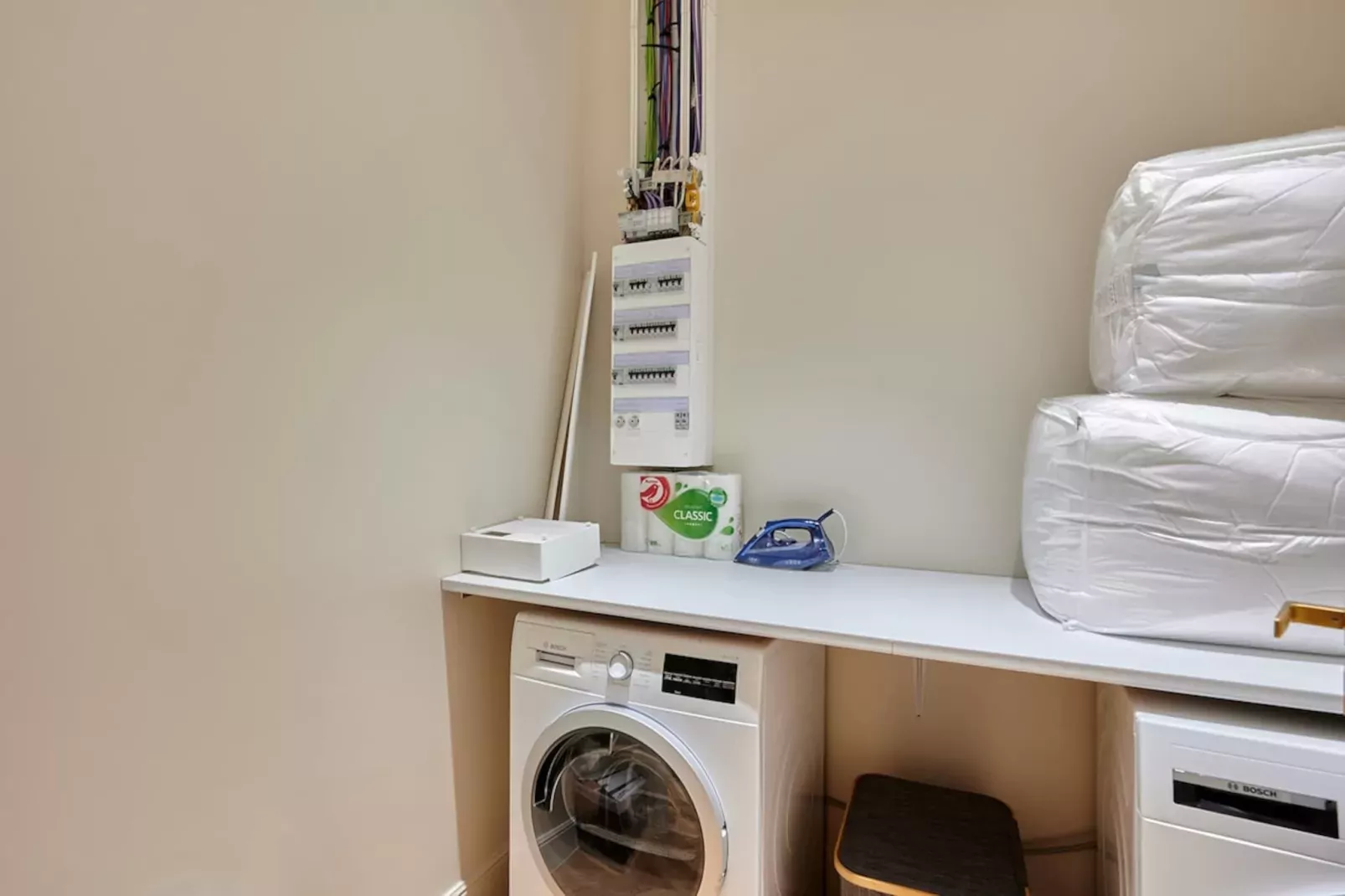 Es gibt auch eine Waschküche mit Waschmaschine und Wäschetrockner.
