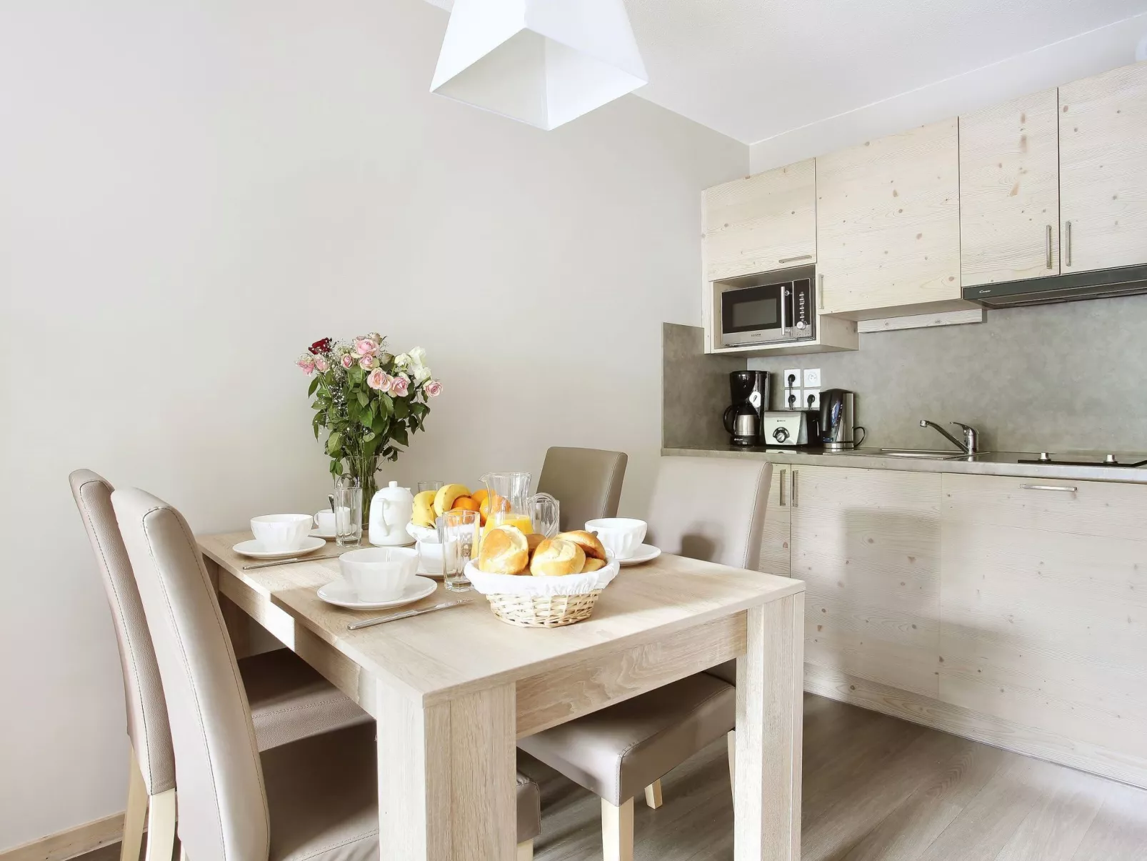 "Résidence Odalys Référence Le Panoramic", 2-Zimmer-Wohnung 42 m2, im Erdgeschoss. Geschmackvoll eingerichtet: Wohn-/Schlafzimmer mit 2 Schlafmöglichkeiten, Esstisch und TV. Ausgang zum Balkon. 1 Zimmer mit 1 franz. Bett. Schlafnische mit 1 x 2 Etagenbetten. Kleine, offene Küche (Geschirrspüler, 2 Glaskeramikplatten, Toaster, Wasserkocher, Mikrowelle, elektrische Kaffeemaschine). Bad/WC. E-Heizung. Balkon. Zur Verfügung: Internet (WLAN, gratis). Parkplatz (überdacht, 1 Auto). Maximal 1 Haustier/Hund erlaubt. Anstelle eines abgeschlossenen Schlafzimmers befinden sich manche Schlafplätze in einem offenen Bereich (Galerie, Nische etc.).