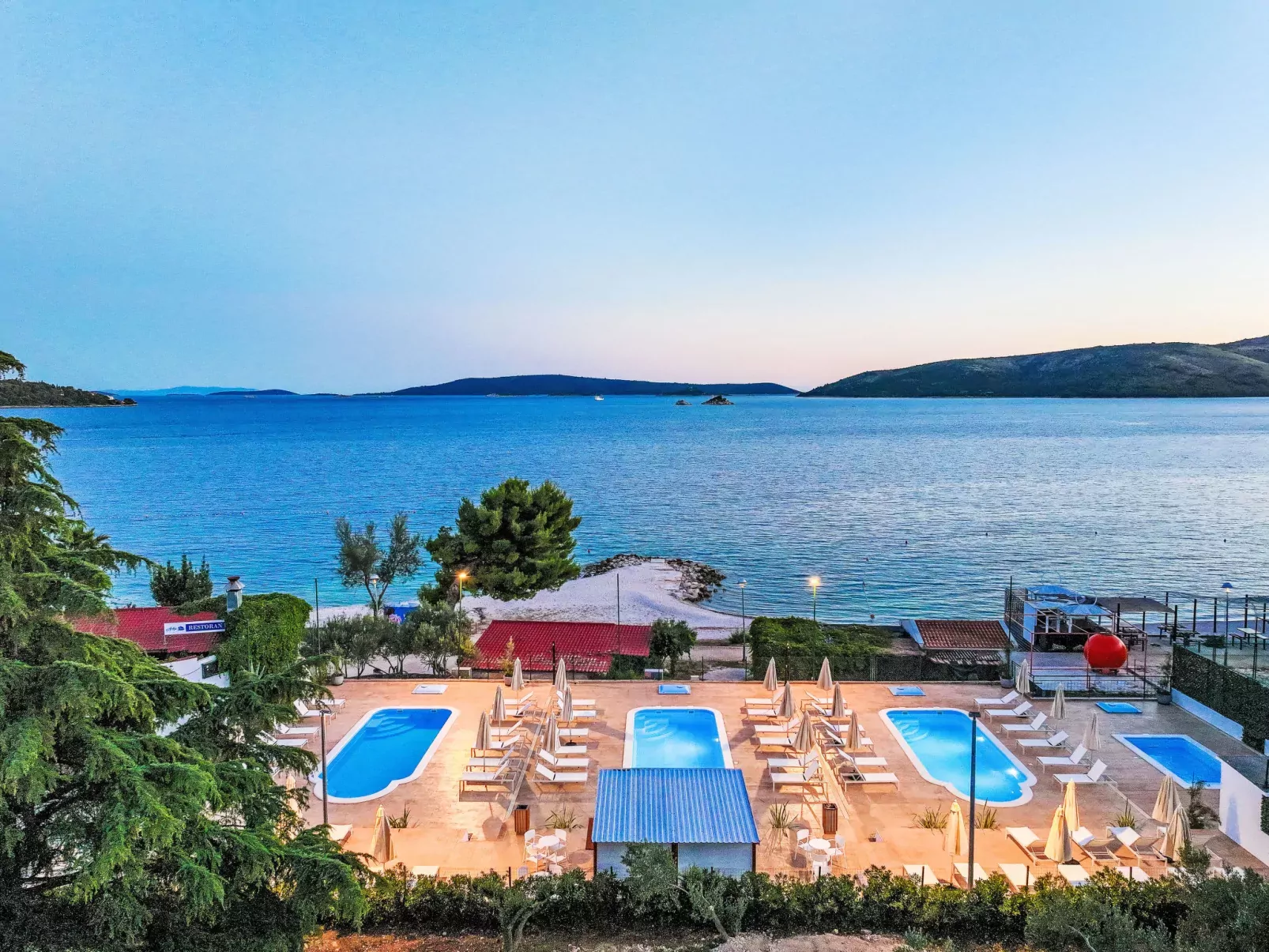 Ferienanlage "Medena". Im Ortsteil Seget Donji, 3 km vom Zentrum von Trogir, 30 km vom Zentrum von Split, direkt am Meer. Zur Mitbenutzung: Grundstück mit Pflanzen und Bäumen, 3 Schwimmbäder (31 m2, 140 cm tief, saisonale Verfügbarkeit: 01.Apr. - 01.Nov.) mit Innentreppe. Kinderbecken, Aussendusche, Tennis (extra), Basketball (extra), Kinderspielplatz. In der Anlage: Empfang, Restaurant, Internetzugang, Wäscherei. Zur Verfügung: Fahrräder (extra). Frühstück Vollpension Halbpension möglich auf Anfrage (extra). Abholservice vom Flughafen (extra). Parkplatz (extra) auf dem Grundstück. Bushaltestelle 650 m. Objekt geeignet für 4 Erwachsene + 1 Kind. Bitte beachten: Flugplatz 8 km vom Haus. Das Foto ist nur ein Hausbeispiel. EineSchlafsofa m Wohn-/Essbereich ist nur für 1 Kind bis zu 12 Jahren geeignet.