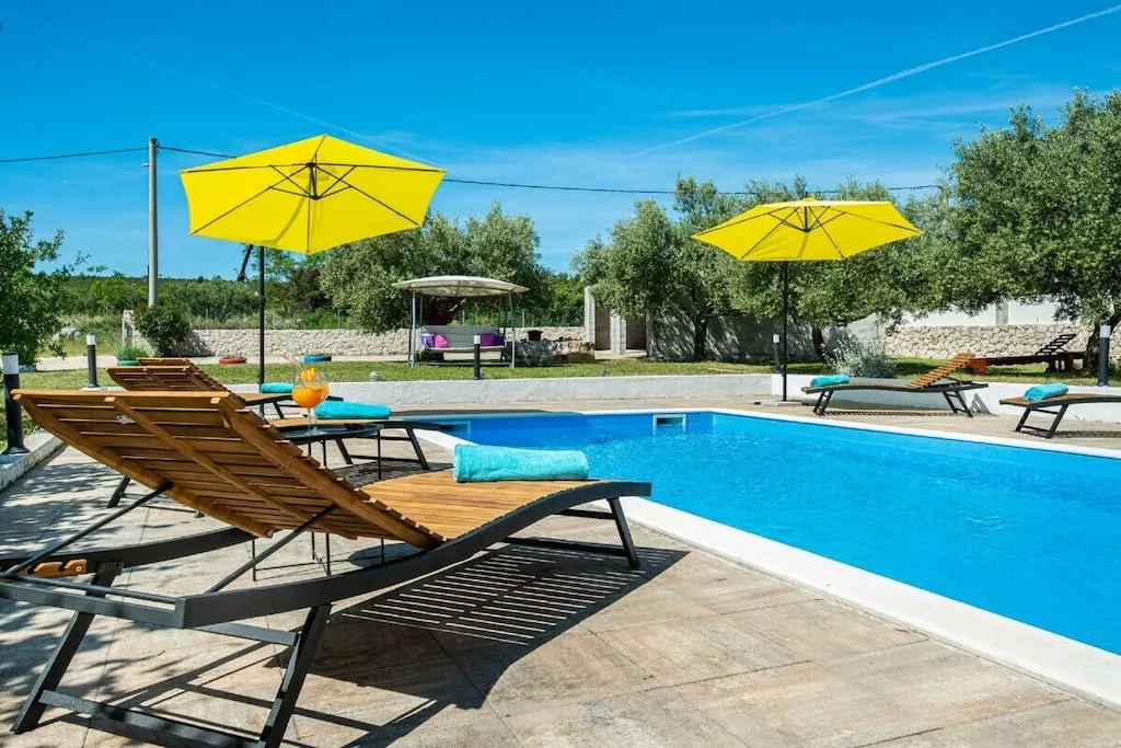 Das Ferienhaus Marina befindet sich im Dorf Glavica - Sukošan, 3,5 km vom Strand im Landkreis Zadar entfernt. Das Anwesen ist komplett eingezäunt, umgeben von Natur und grünen Hügeln. Das Haus ist 130 m² groß und besteht aus einer voll ausgestatteten Küche, einem Essbereich, einem Wohnzimmer, 3 Schlafzimmern, eines mit 2 Einzelbetten und 2 mit Doppelbetten. Es gibt auch 2 Badezimmer, eines mit Badewanne und eines mit Dusche. In der Nähe des Außenbereichs befindet sich ein Aufenthaltsraum mit Fitnessgeräten, Billardtisch und Dart, zusätzlicher Küche und Toilette. Im Hof gibt es einen schönen Pool mit Liegestühlen und Liegestühlen, Gartenmöbeln und einer großen Grillstation mit Esstisch. Für unsere Gäste stehen auch Fahrräder zur Verfügung. Haustiere sind gegen Aufpreis willkommen.
