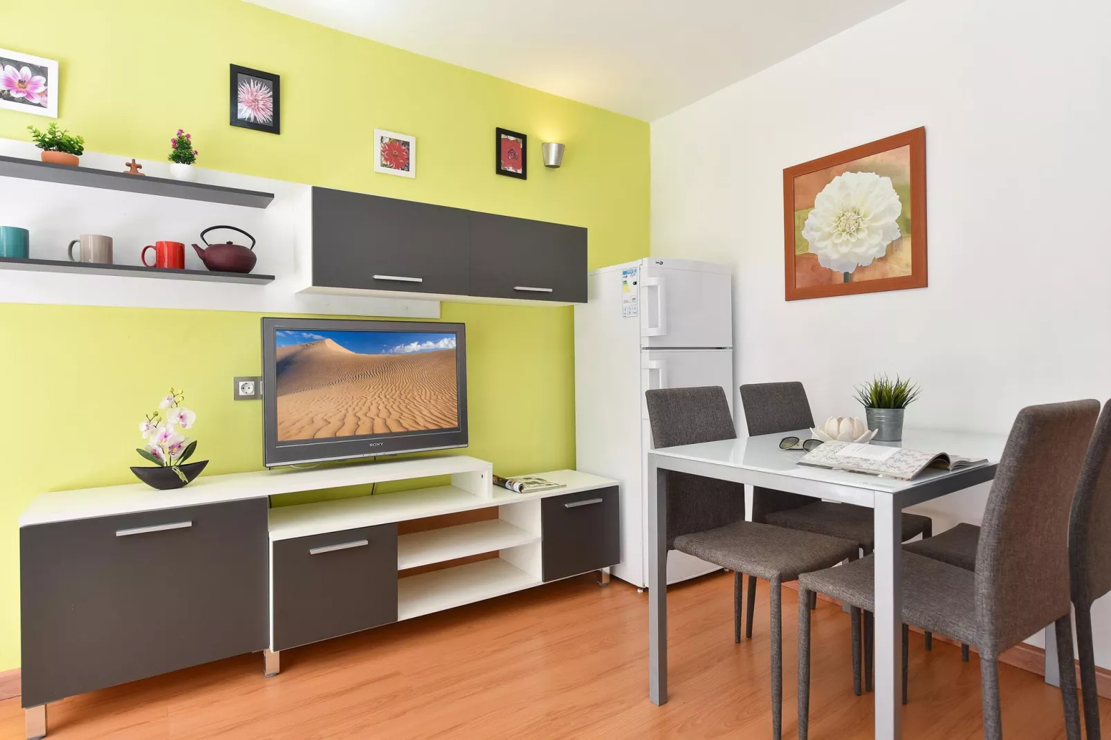 The apartment is located in Maspalomas. This one bedroom accommodation is in the best part of Maspalomas, just a few steps from La Charca and 100m from Maspalomas beach.This is a simple but cozy and well equipped apartment that has everything you need to feel comfortable in to feel comfortable in this privileged location. This apartment has a small kitchen, a bedroom with two single beds, a comfortable living room with Smart TV and access to Netflix and a small terrace.There are many restaurants within walking distance and only 8 minutes walk from Meloneras Boulevard where there is Lots of shops, restaurants and 5 star hotels.Highlights ! High speed internet