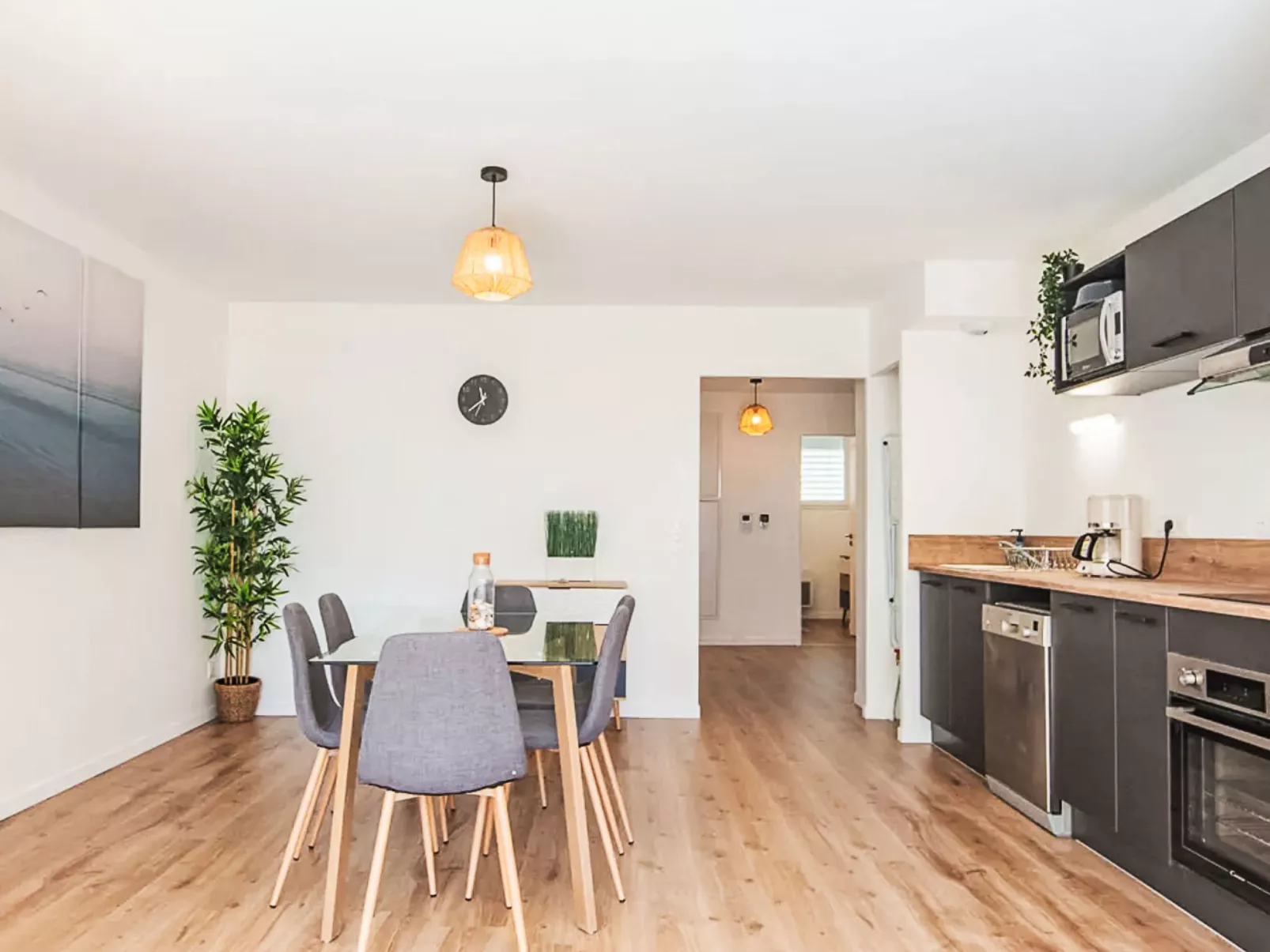3-room apartment 65 m2, on the ground floor. Modern and cosy furnishings: living/dining room with TV (flat screen). Exit to the terrace. 2 rooms, each room with 1 french bed (140 cm, length 190 cm). Open kitchen (oven, dishwasher, 4 ceramic glass hob hotplates, toaster, kettle, microwave, freezer, electric coffee machine). Shower, sep. WC. Electric heating. Terrace 10 m2. Terrace furniture. Facilities: washing machine, hair dryer. Internet (WiFi, extra). Offer by a private individual according to Art. 155, IV of CGI. 40065001486QU