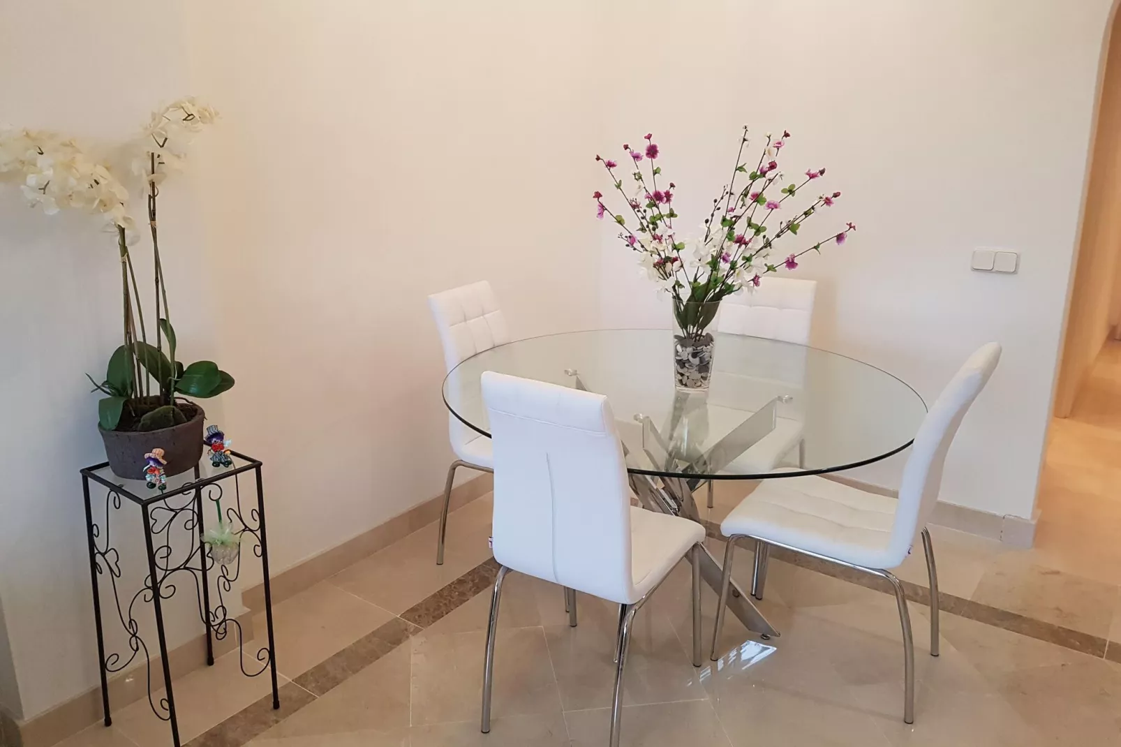 This beautiful apartment is perfectly situated on the Calanova golf course, offering a lovely terrace with expansive views over the golf greens and down the valley towards La Cala Mijas and the sea. The residential complex, surrounded by lush gardens, provides an idyllic setting with outdoor pools and several tranquil areas, ideal for relaxation, reading, or yoga. Younger guests will enjoy the dedicated playground.