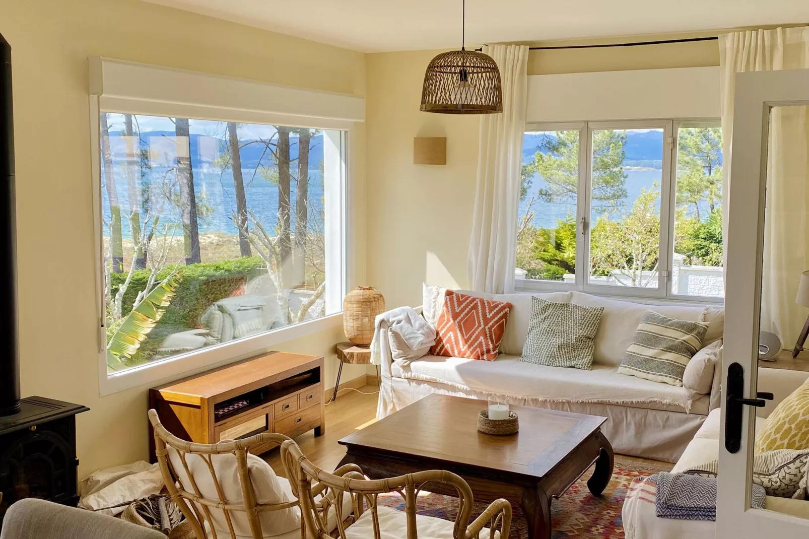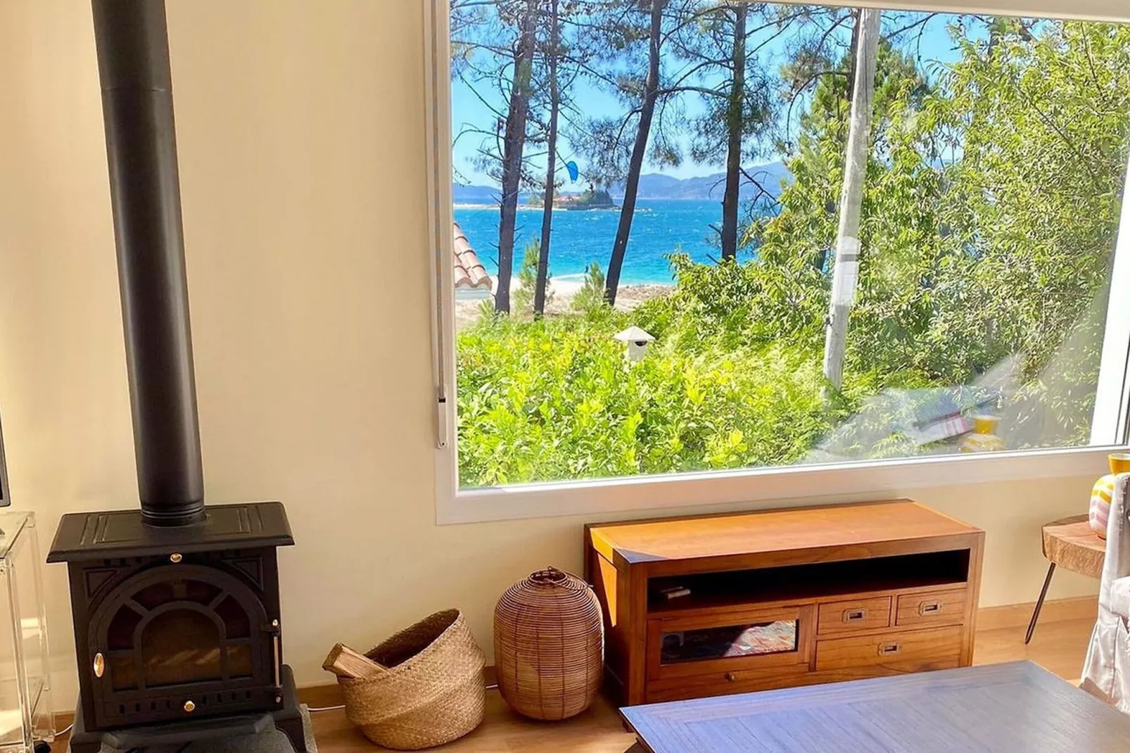 An optional utilities and service fee of EUR 90,00 will be charged before your arrival. Details are given below.Spacious Coastal Living Step into this bright and airy holiday home, just a few steps from Aguieira Beach. Two entrances lead into a welcoming living room bathed in natural light, with a cozy fireplace perfect for cooler evenings. The fully equipped kitchen encourages culinary creativity, while two comfortable double bedrooms and a single bed provide restful nights for up to five guests. A fold-away bed and cot ensure flexibility for families with children. Serene Tropical Garden The private garden spans 400 m² and features lush tropical plants, creating a tranquil retreat where you can unwind on the terrace or the porch with an electric awning. Enjoy meals outdoors with the charcoal BBQ, lounge on garden furniture, or simply soak in the peaceful ambiance. A garage with a manual door provides secure parking, and the partially fenced garden ensures privacy and safety for children. Nearby Exploration & Dining Venture just a short walk to restaurants or enjoy the pristine sand at Playa de Aguieira and Playa do Pozo. For day trips, historic Santiago de Compostela is only 35 minutes away, while Finisterre and the Dunas de Corrubedo are within easy reach. With no Wi-Fi in the house, this property offers a true unplugged experience, encouraging you to savor the waves, local cuisine, and scenic beauty of Green Spain. Pets are not permitted, making this home ideal for a quiet, relaxing retreat.