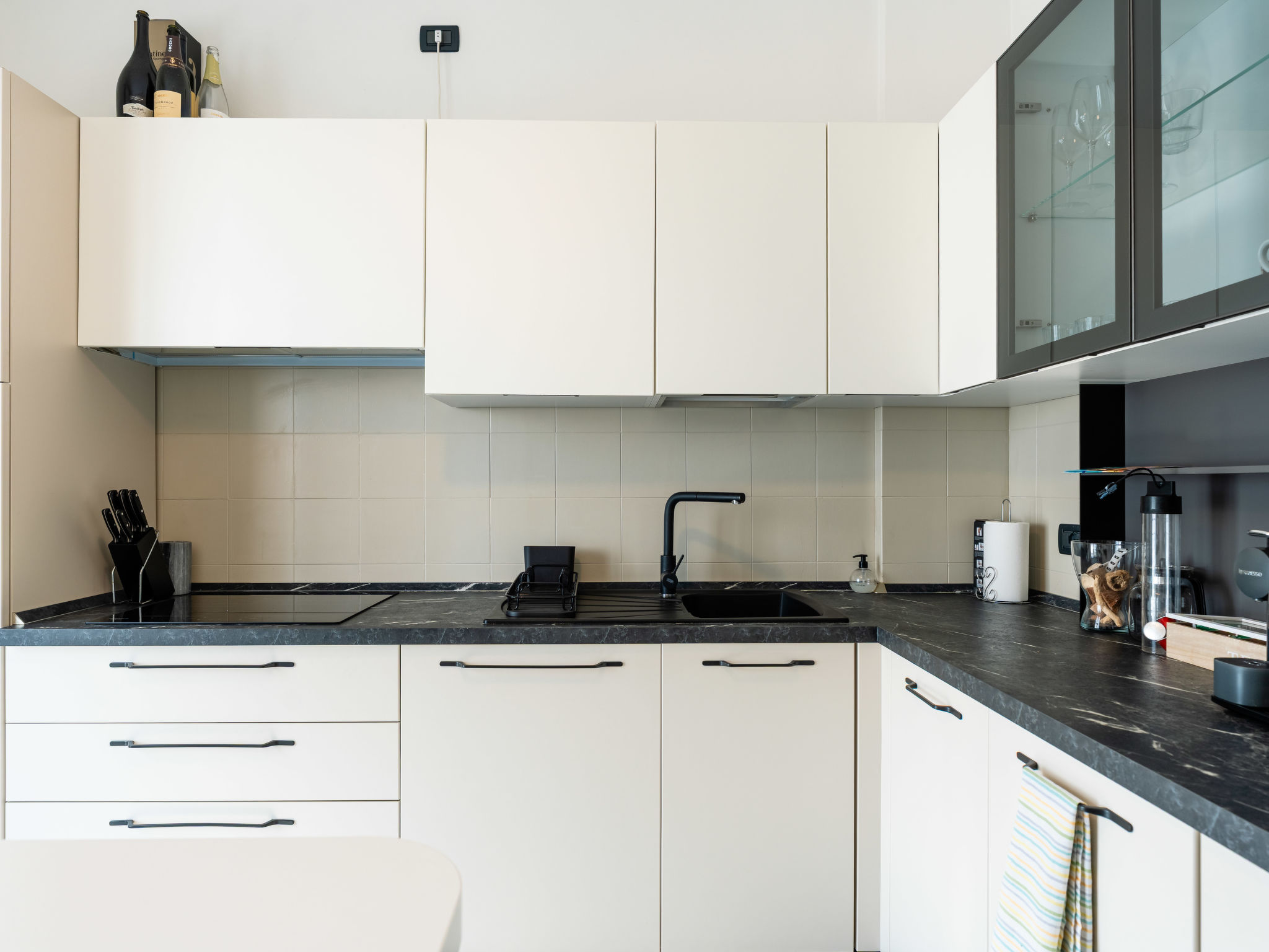 "Casa sul Mare", 2-room apartment 70 m2 on 3rd floor. Beautiful and modern furnishings: living/dining room with 1 double sofabed (160 cm, length 200 cm), TV. Exit to the balcony. 1 double bedroom. Kitchen-/living room (oven, dishwasher, 4 induction hot plates, toaster, kettle, microwave, electric coffee machine). Exit to the balcony. Shower/bidet/WC. Gas heating, air-conditioning, forced-air heating. Heating available only from 01.11. to 15.04. Balcony 12 m2. Balcony furniture. Very beautiful panoramic view of the sea. Facilities: washing machine, children's high chair, baby cot for up to 2 year olds. Internet (WiFi, free). Please note: maximum 1 pet/ dog allowed. Smoke alarm, fire extinguisher. IT009006C2RT8IJ9BL