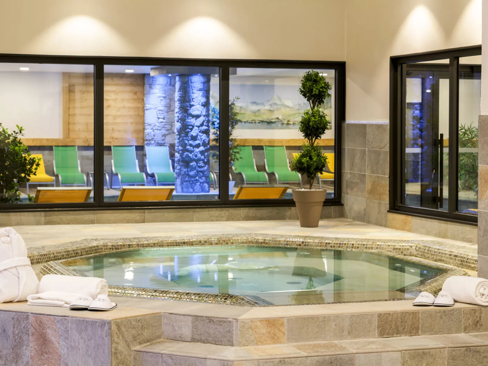 Beautiful, rustic, comfortable residence "CGH Résidence & Spa Le Napoléon". 53 apartments in the property. In the centre Montgenèvre, 13 km from the centre of Briançon, 176 km from the centre of Grenoble, directly by the skiing area, on the golf course. For shared use: indoor pool heated (13 x 7 m, seasonal availability: 01.Jan. - 31.Dec.). In the complex: reception, lounge, WiFi, sauna, fitness room, massage (extra). Steam room, hot tub, lift, storage room for skis, washing machine (extra), ski boot dryer. Bread roll service. Storeroom available. Communal covered parking (extra). Parking space or garage only for small to medium-sized cars. Dimension: height 180 cm. Shop 50 m, grocery 50 m, restaurant, bar, railway station "Briançon" 12 km. Golf course (18 hole) 200 m, walking paths from the house, ski lift 100 m, slopes, ski rental 100 m. Well-known ski regions can easily be reached: La Voie lactée/Via Lattea. Please note: baby equipment on request (included). The photograph shows a typical example. The holiday properties may differ in living space, floorplan, equipment and furnishing.