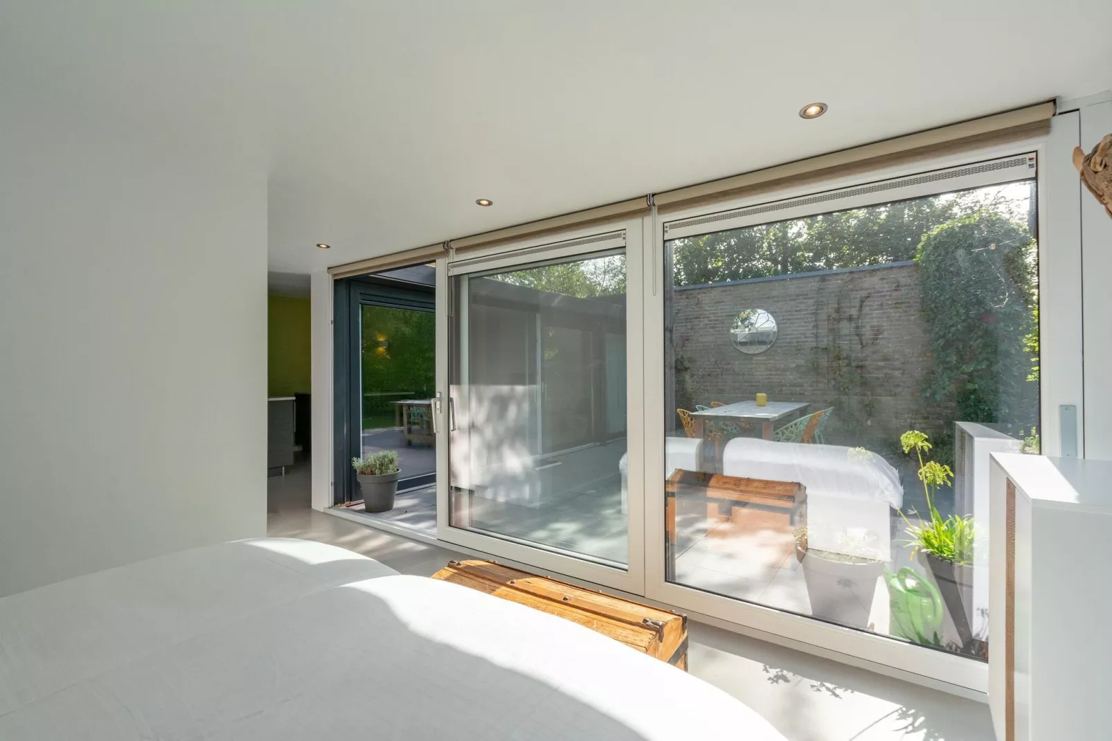 The open kitchen has various contemporary kitchen appliances and a dining bar with seating for 4 people. The large (open) bedroom with a spacious double bed is romantically decorated and also has a beautiful view of the garden through the large sliding doors. The second bedroom has a bunk bed. There is a beautiful bathroom with toilet, sink and lovely rain shower! The house is heated by underfloor heating.