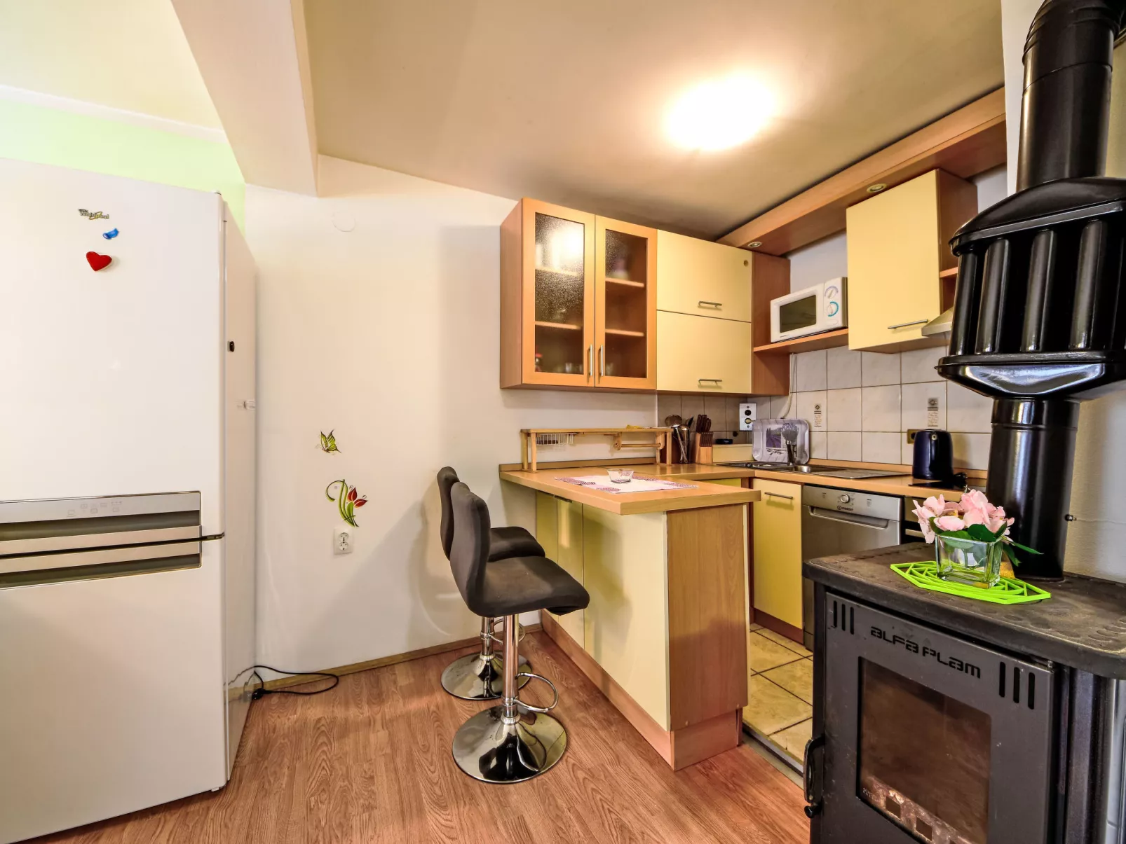 2-room apartment 32 m2, on the ground floor. Living/dining room with 1 double sofabed (2 x 70 cm, length 190 cm), digital TV and air conditioning. Exit to the terrace. 1 room with 1 french bed (160 cm, length 200 cm). Open kitchen (oven, dishwasher, 2 ceramic glass hob hotplates, kettle, microwave, freezer, electric coffee machine). Shower/WC. No heating option. Terrace 9 m2 partly roofed. Terrace furniture. Facilities: Internet (WiFi, free). Parking (1 car) at the house.