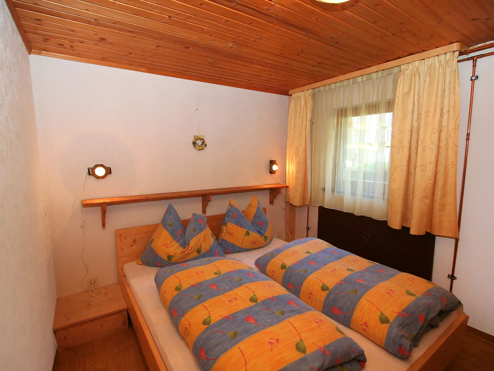 5-room chalet 93 m2 on 2 levels. Simple and cosy furnishings: 1 double bedroom with shower. Living/dining room with dining nook and satellite TV (flat screen), radio. Open kitchen (oven, dishwasher, 4 ceramic glass hob hotplates, microwave). Sep. WC. On the lower ground floor: 2 double bedrooms. 1 small room with 2 beds. Shower, sep. WC. Balcony, terrace roofed. Marvellous view of the mountains and the valley. Please note: maximum 2 pets/ dogs allowed. Smoke alarm.