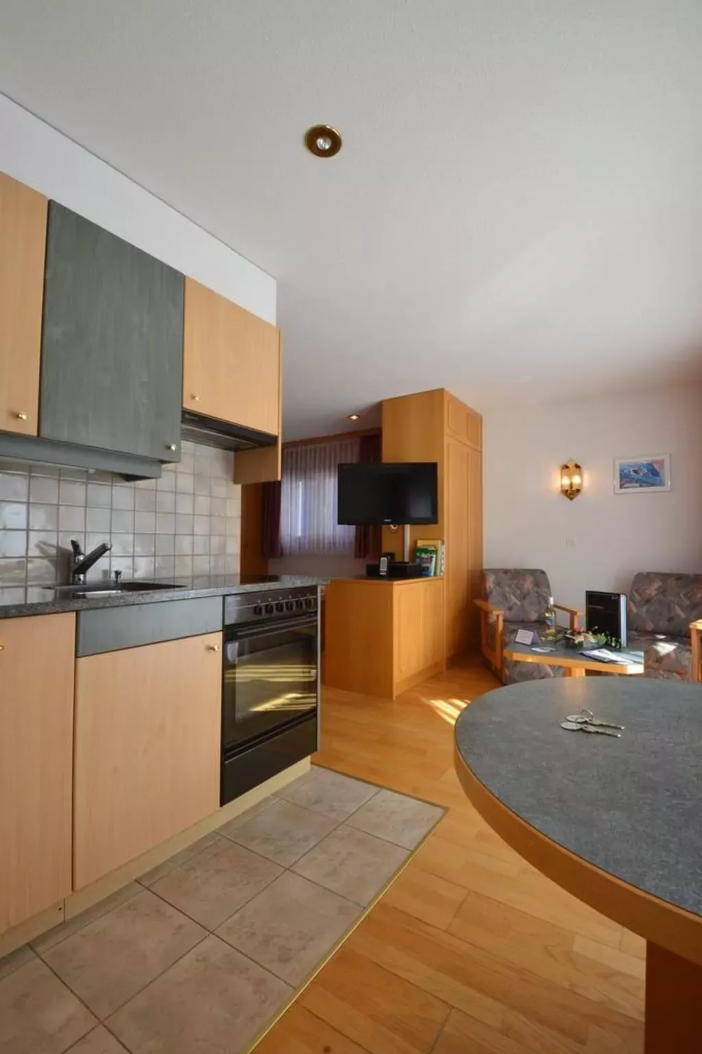 28 m2. More information by the provider: Helvetia Apartments: quality, relaxation and holiday experiences are guaranteed. Our modern spacious, top-quality ****superior-holiday apartments for 1 - 5 people in the best position in Saas-Fee leave nothing to be desired. The Helvetia holiday oasis is situated in a quiet central location in the glacier village of Saas-Fee, in the hamlet of Undri Gassu. All tourism facilities such as cable cars, a sportsground, Aqua Allalin and a church are within quick and easy reach. The main shopping street with its various shops, restaurants, bakers, tea rooms and ATMs is in the immediate vicinity. In short, it’s the ideal location for your summer or winter holiday in Saas-Fee the “Pearl of the Alps”. Relax, feel good and enjoy yourself – a warm welcome! ***SaastalCard: in summer all cable cars (except Metro-Alpin) and Postbuses in the whole Saas valley included *** Modern holiday Studio-apartment (26 m2 ) consisting of a living- and bed-room with telephone (direct dial), radio/CD player, flatscreen TV, video, kitchen with glass ceramic hob, fridge, coffee machine (Delizio capsules or filter), dishwasher, microwave, cheese fondue set, dining table, leather sofa, shower, WC, terrasse with garden furniture and sunbathing area. The **** holiday apartment with its modern and contemporary facilities is very spacious and of a high quality standard. Holiday taxes Summer (01.06. -31.10.): CHF 7.-/adults, CHF 3.50/children (age 6 - 15.99) per day. Holiday taxes Winter (01.11. -31.05.): CHF 4.50 for adults, CHF 2.25 for children (age 6 - 15.99) per day. All linen available. Baby bed on request. Pets are not allowed.