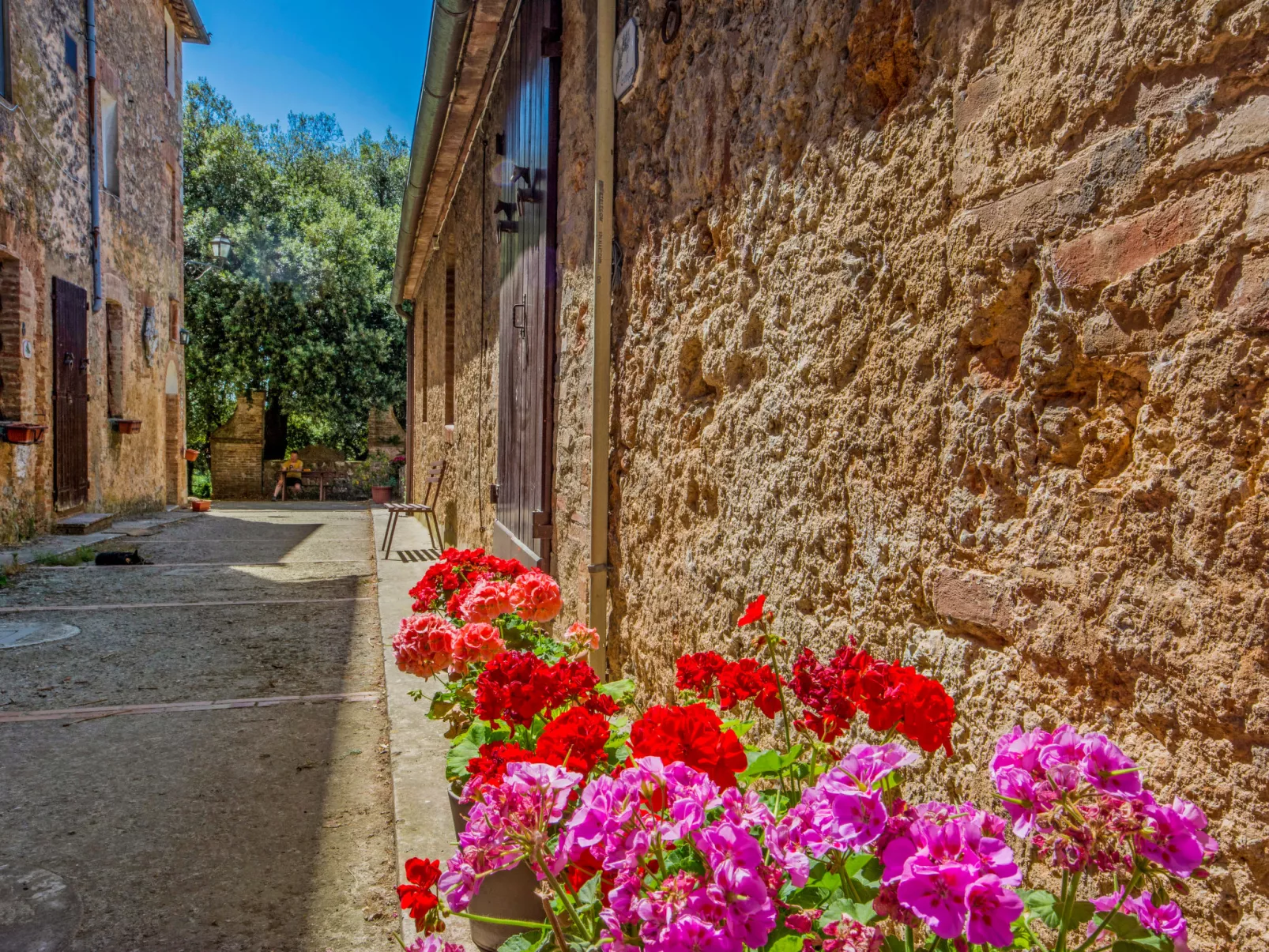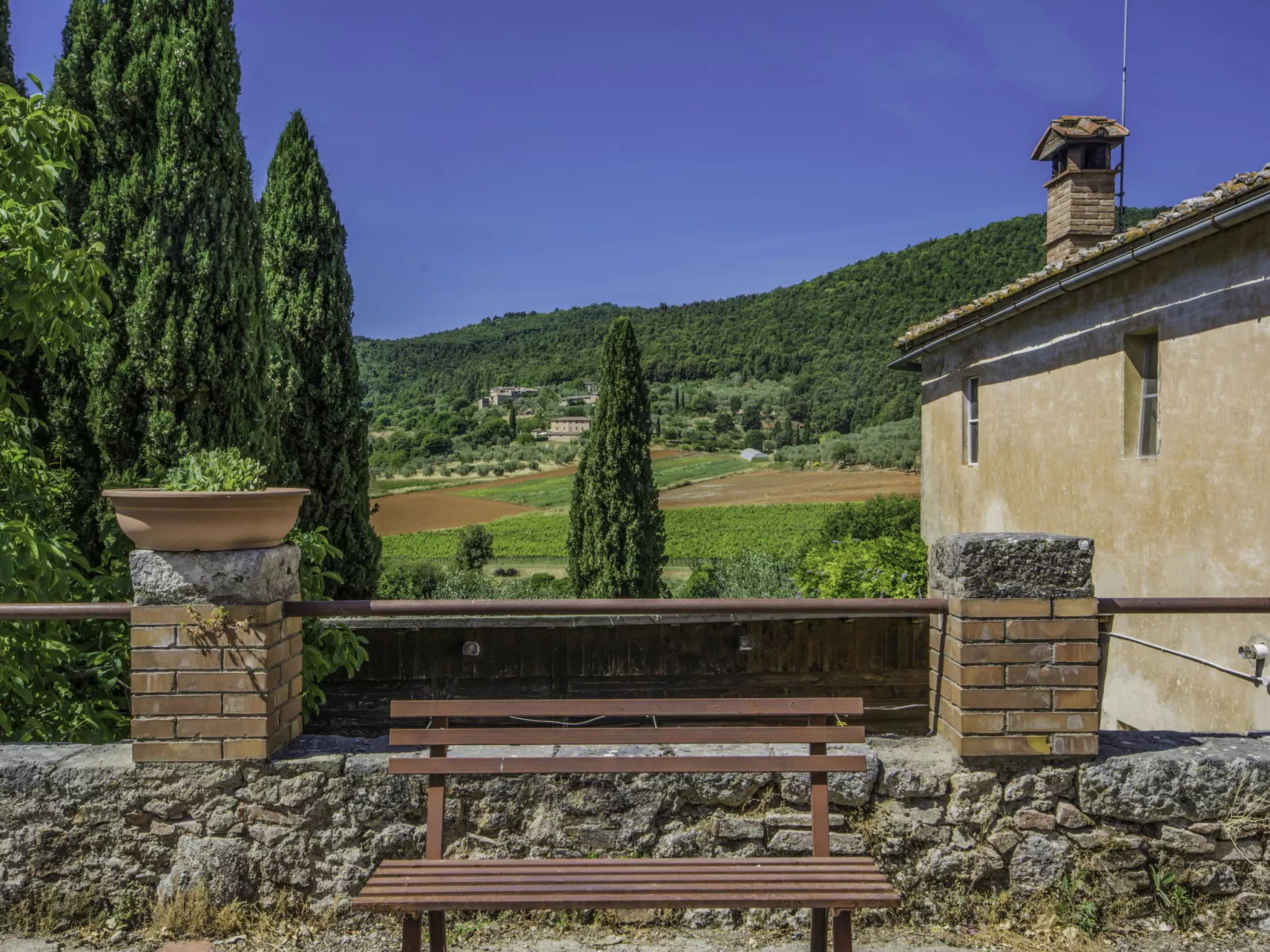 Farmhouse "Il Pero di Cetinale". 12 apartments in the property. 17 km from the centre of Siena, 76 km from the centre of Firenze, in a secluded, quiet position, 20 m from the edge of the forest, in the countryside. For shared use: natural garden, swimming pool (7 x 14 m, depth 130 - 270 cm, seasonal availability: 01.Jun. - 15.Sep.). Garden furniture, barbecue. In the house: reception, WiFi, central heating system, heating available only from 01.Nov. - 15.Apr.. Linen change weekly. Towel change weekly. Motor access (1 km via unmade road). Parking at the house. Supermarket 4 km, shopping centre 17 km, bar 4 km, bus stop "Sovicille" 5 km, thermal baths "Rapolano Terme" 45 km. Golf course (18 hole) 15 km. Nearby attractions: Siena 17 km, San Gimignano 30 km, San Galgano 25 km, Val d'Orcia 55 km. Please note: car recommended.