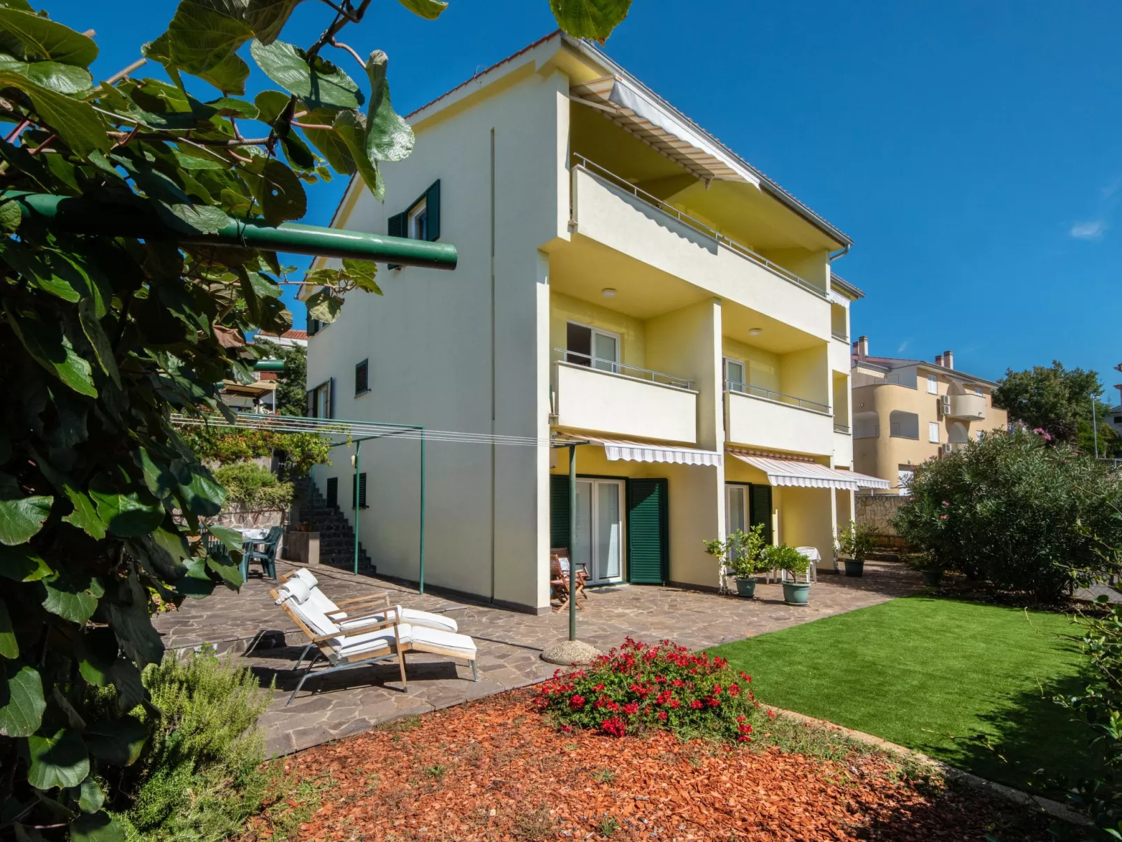 Apartment house "Balorda". 11 km from the centre of Krk, 11 km from the centre of Malinska, in a quiet, sunny position, 400 m from the sea, 400 m from the beach, in a cul-de-sac. For shared use: property 570 m2. Garden furniture, barbecue. In the house: internet access. Parking at the house on the premises. E-charging station. Shop 500 m, restaurant 1 km, bus stop 1.6 km, pebble beach 750 m, rocky beach, concrete beach 400 m.
