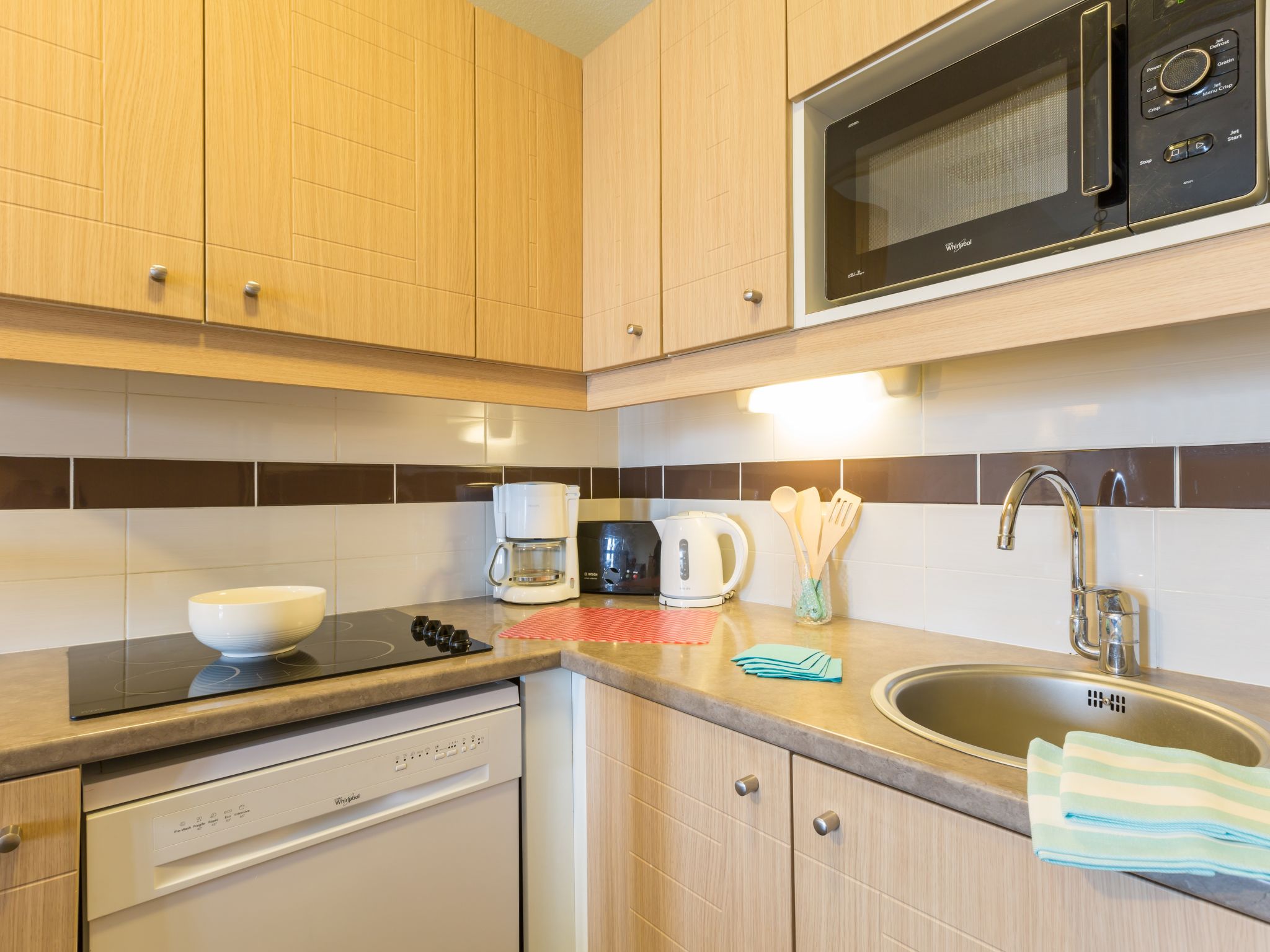 "Le Port", 3-room maisonette 44 m2. Beautiful furnishings: living/sleeping room with 2 sofabeds (80 cm, length 190 cm), TV (flat screen). Exit to the balcony. Sleeping alcove with (80 cm, length 190 cm), 1 x 2 bunk beds. Kitchenette (dishwasher, 2 ceramic glass hob hotplates, toaster, kettle, microwave, electric coffee machine, combination microwave). Sep. WC, bath or shower. Upper floor: 1 room with 1 double bed (190 cm, length 200 cm). Electric heating. Small balcony. View of the port. Facilities: children's high chair, baby cot. Internet (WiFi, free). Please note: maximum 1 pet/ dog allowed. Smoke alarm. Offer by a commercial proprietor according to Art. 155, IV, CGI