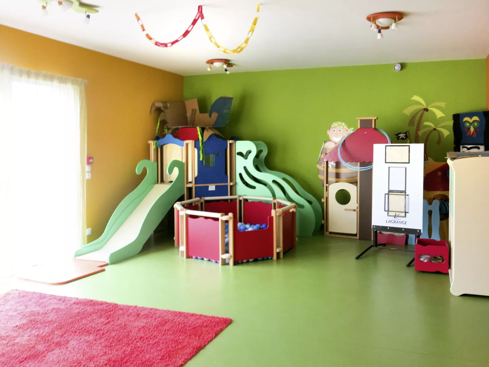 Child friendly resort "Le Village de la Mer", 2 storeys. 71 houses in the residence. 7 km from the centre of Talmont-Saint-Hilaire, 7 km from the sea, in a cul-de-sac, in the countryside. For shared use: property 12 ha with plants, meadow, swimming pool heated (24 x 9 m, depth 90 - 150 cm, seasonal availability: 15.May. - 15.Sep.). Tennis, table tennis. In the complex: sauna (extra). Fitness room, steam room (extra). Hot tub (extra). Billiard table, storage room for bicycles, washing machine, tumble dryer (for shared use, extra). Motor access to the house. Footpath to the house. Parking. Shop 6 km, bus stop "Centre Equestre" 1.6 km, sandy beach "Plage du Veillon" 7 km. Golf course (18 hole) 3 km. Please note: the photograph shows a typical example. The holiday properties may differ in living space, floorplan, equipment and furnishing.