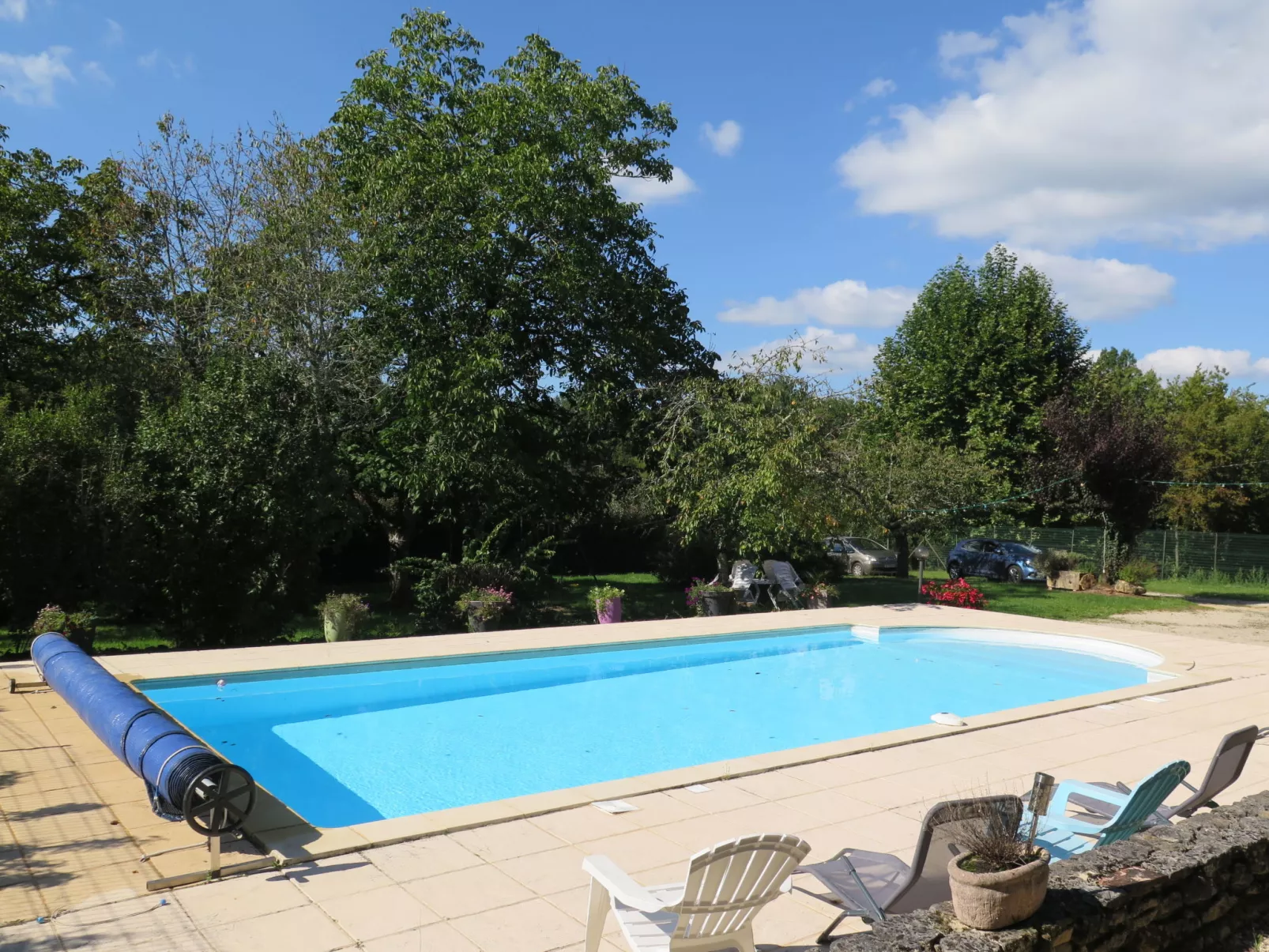 Rustic, comfortable country house "Les Grèzes", surrounded by trees and meadows. 2 km from the centre of Montcabrier, 3 km from the centre of Duravel, 7.5 km from the centre of Puy l’Évêque, in a secluded position, in the countryside. Private: large garden (fenced) with lawn 700 m2 trees, swimming pool (10 x 5 m, depth 100 - 170 cm, seasonal availability: 01.Jan. - 31.Dec.) with internal staircase and shutter cover. Table tennis, terrace, garden furniture. In the house: storage room for bicycles. Parking at the house on the premises. Shop 3 km, supermarket 7.5 km, bus stop "Fumel-Place du Postel" 12 km.