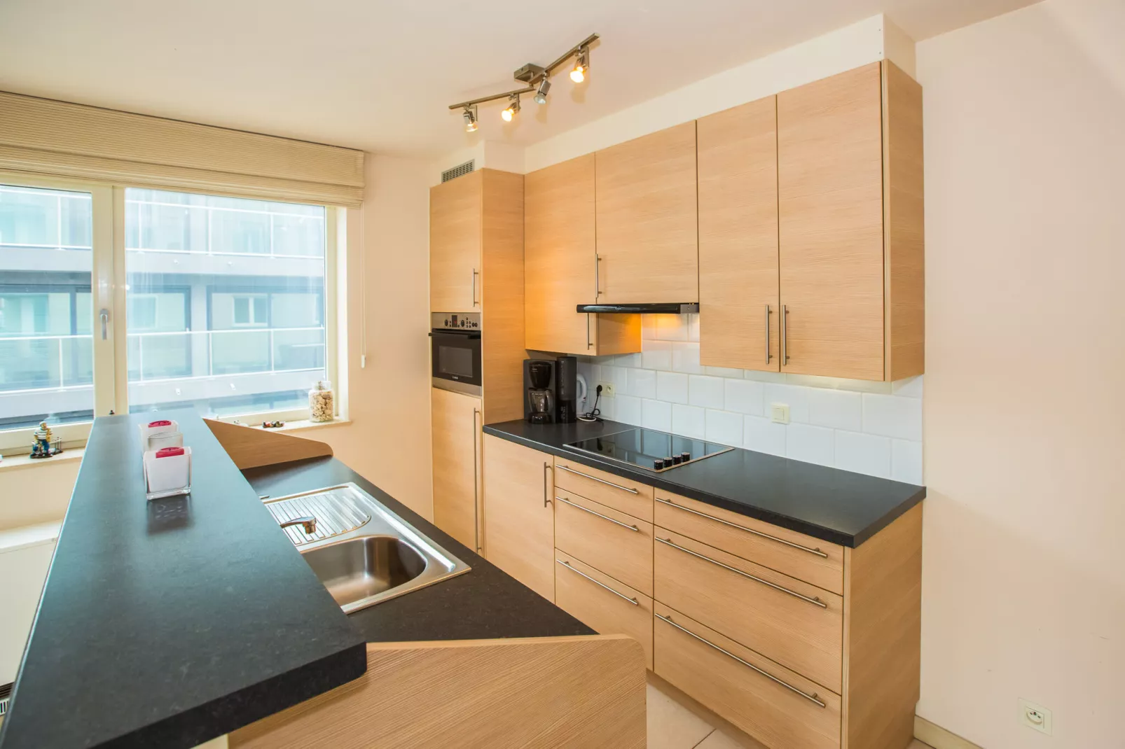 Corner flat on the 5th floor with 2 bedrooms (2x double bed). Furthermore, there is a bright, spacious living room (sofa bed for 2 persons), a terrace overlooking Leopodlaan, an open-plan fitted kitchen, a bathroom with a bathtub and a shower room. Finally, there is a separate toilet. This residence is close to public transport, the seafront, shops, etc. Wifi: yes - garage: included - sheets: bring your own - towels: bring your own.