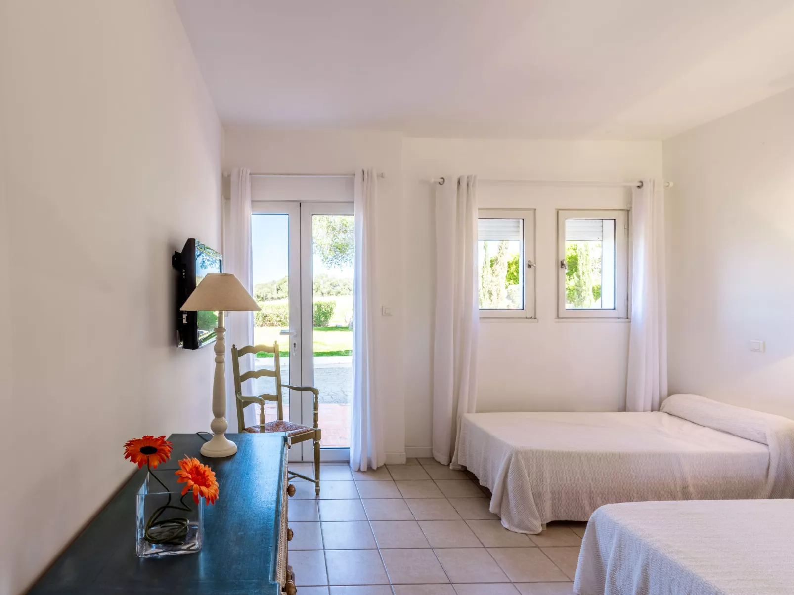 "Marie Diane", 5-room apartment 110 m2, on the ground floor. Comfortable and beautiful furnishings: living/dining room with dining table and TV. Exit to the terrace. 1 room with 1 french bed. 3 rooms, each room with 2 beds. Open kitchen (oven, dishwasher, 4 gas rings, toaster, kettle, microwave, freezer, electric coffee machine). 2 showers/WC. Heating, air-conditioning. Terrace. Terrace furniture, barbecue, deck chairs (2). Facilities: washing machine. Internet (WiFi, free). Please note: non-smokers only. Maximum 1 pet/ dog allowed.