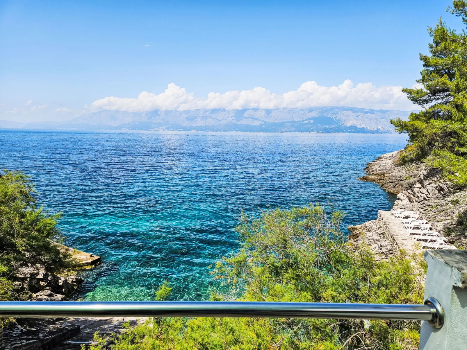 Apartment block "Octopus". 37 km from the centre of Jelsa, in a secluded, quiet, sunny position on a slope, from the sea, 10 m from the beach. For shared use: property 1'500 m2. Terrace (50 m2), garden furniture, barbecue house, children's playground (slide, swing). In the house: internet access, washing machine. Parking at the house on the premises. Shop 3.3 km, bus stop 29.1 km, pebble beach, shingle beach 10 m. Please note: private mooring, on request. The owner lives in the same residence. The tap water has no drinking water quality.