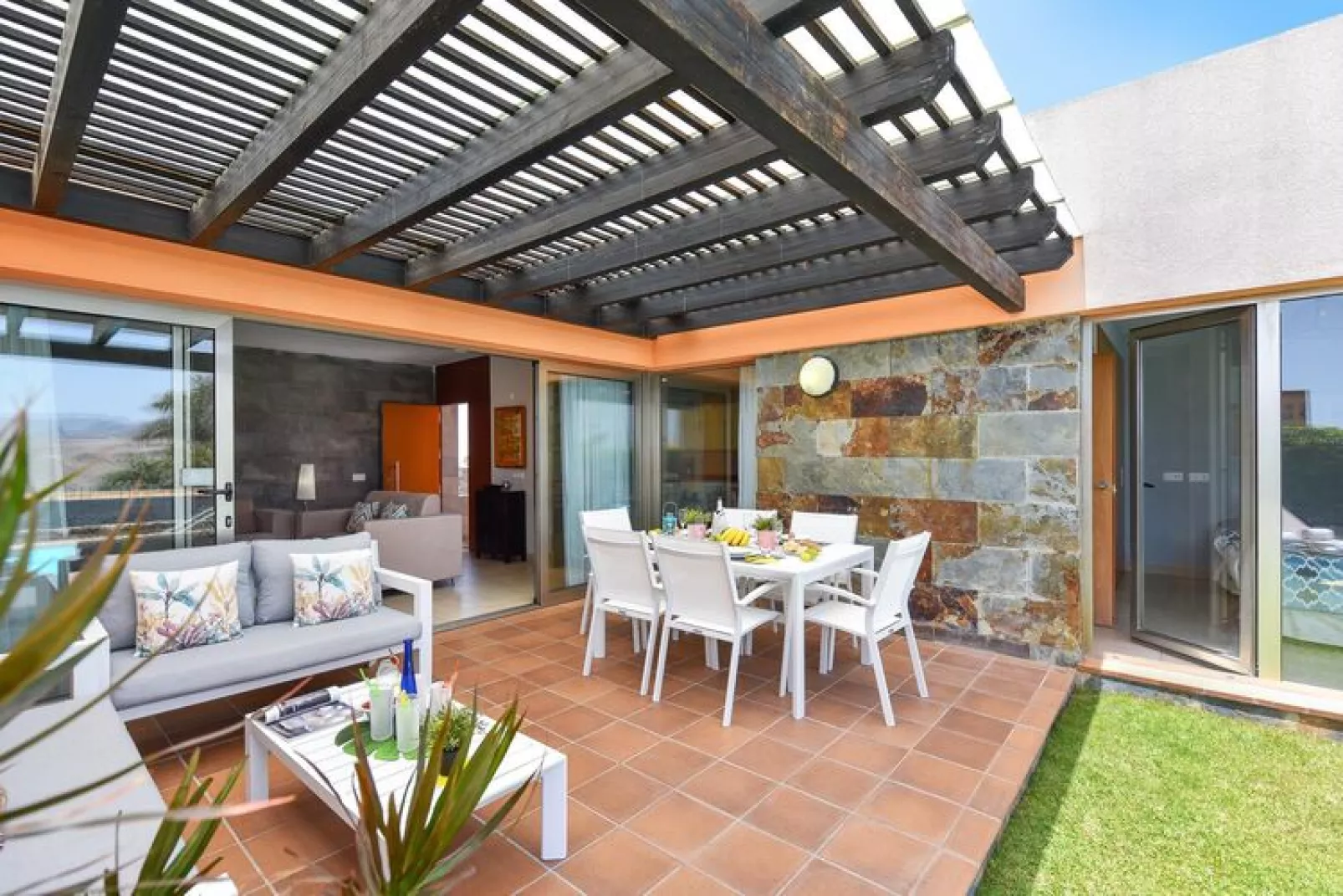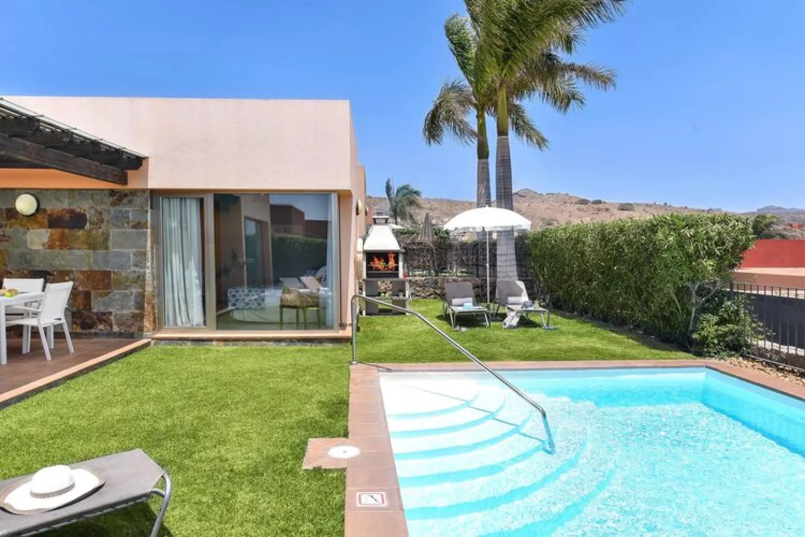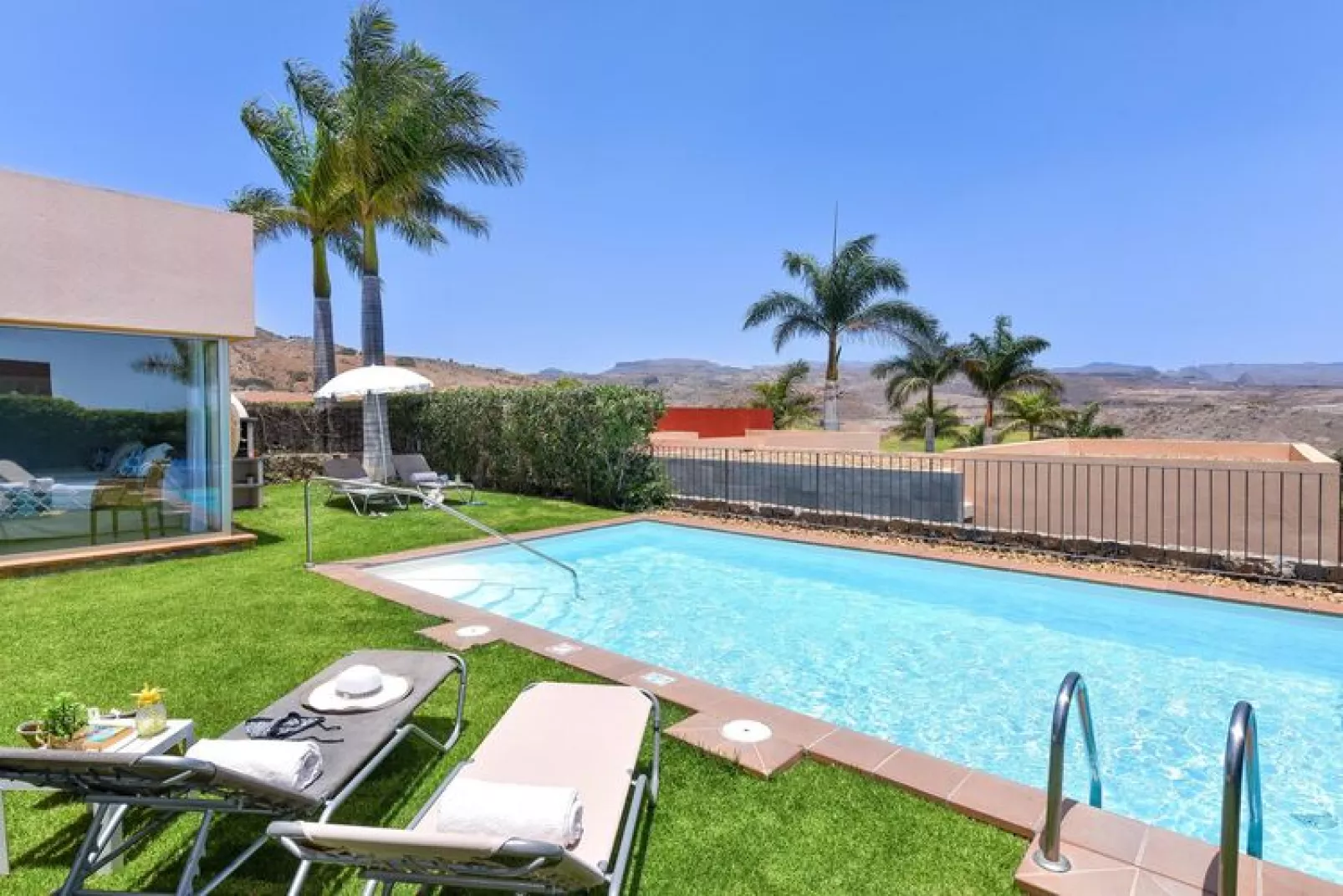 The villa is an exclusive, private and luxurious villa in the natural setting of Salobre Golf, with stunning mountain and golf course views. The large terrace with direct access from the living room has a dining table for 6 people and sofas. It is the ideal place to relax with family and friends, especially after a round of golf. The villa is also equipped with WiFi, air conditioning and satellite TV, so nothing stands in the way of a carefree stay. This exclusive residential complex on the edge of the golf resort was created in a unique landscape in the mountains of Maspalomas. In the immediate vicinity you can buy daily supplies in the supermarket, and a restaurant will spoil you with culinary delights. The popular tourist centers of Maspalomas and Playa del Ingles can be reached in less than ten minutes by car. highlights ! Extras included: WIFI, 15% green fee reduction, welcome package, bread service, consumption-based energy costs, bed linen, towels, final cleaningMobility: Not suitable for people with restricted mobility