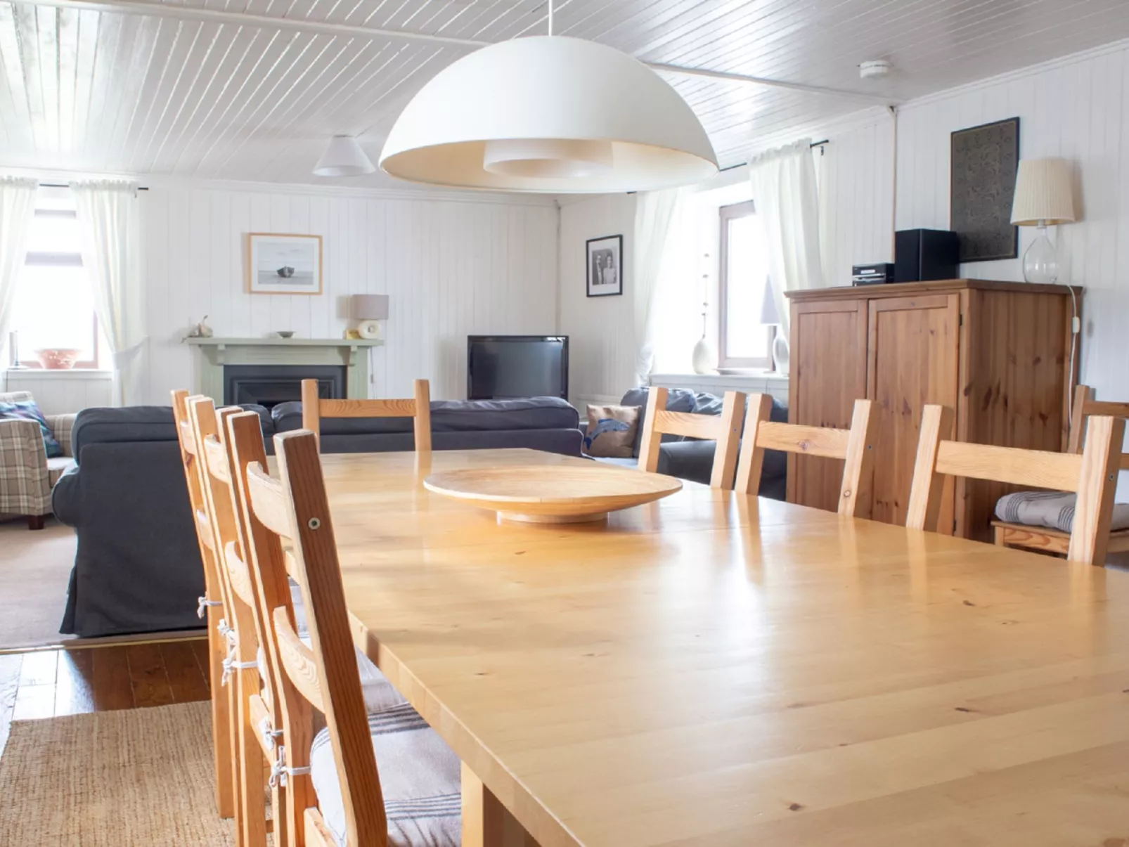 "Ploughman's Cottage", 4-room cottage 103 m2, on the ground floor. Modern and tasteful furnishings: entrance hall. Open living/dining room with dining table, TV and satellite TV (flat screen), radio, CD-player, DVD and wood-burning stove. 1 double bedroom with 1 double bed. 2 rooms, each room with 2 beds. Open kitchen (4 hot plates, oven, dishwasher, microwave, freezer) with small dining table. Sep. WC, bath/shower/WC. Heating. Small terrace, garden. Terrace furniture. Very beautiful view of the sea and the countryside. Facilities: washing machine, dryer, children's high chair, baby cot for up to 2 year olds, hair dryer. Internet (WiFi, free). Parking (2 cars) at the house. Please note: suitable for families. Non-smoking house. Maximum 1 pet/ dog allowed. TV only EN. Please note: the driveway is shared with Finnan's Byre.