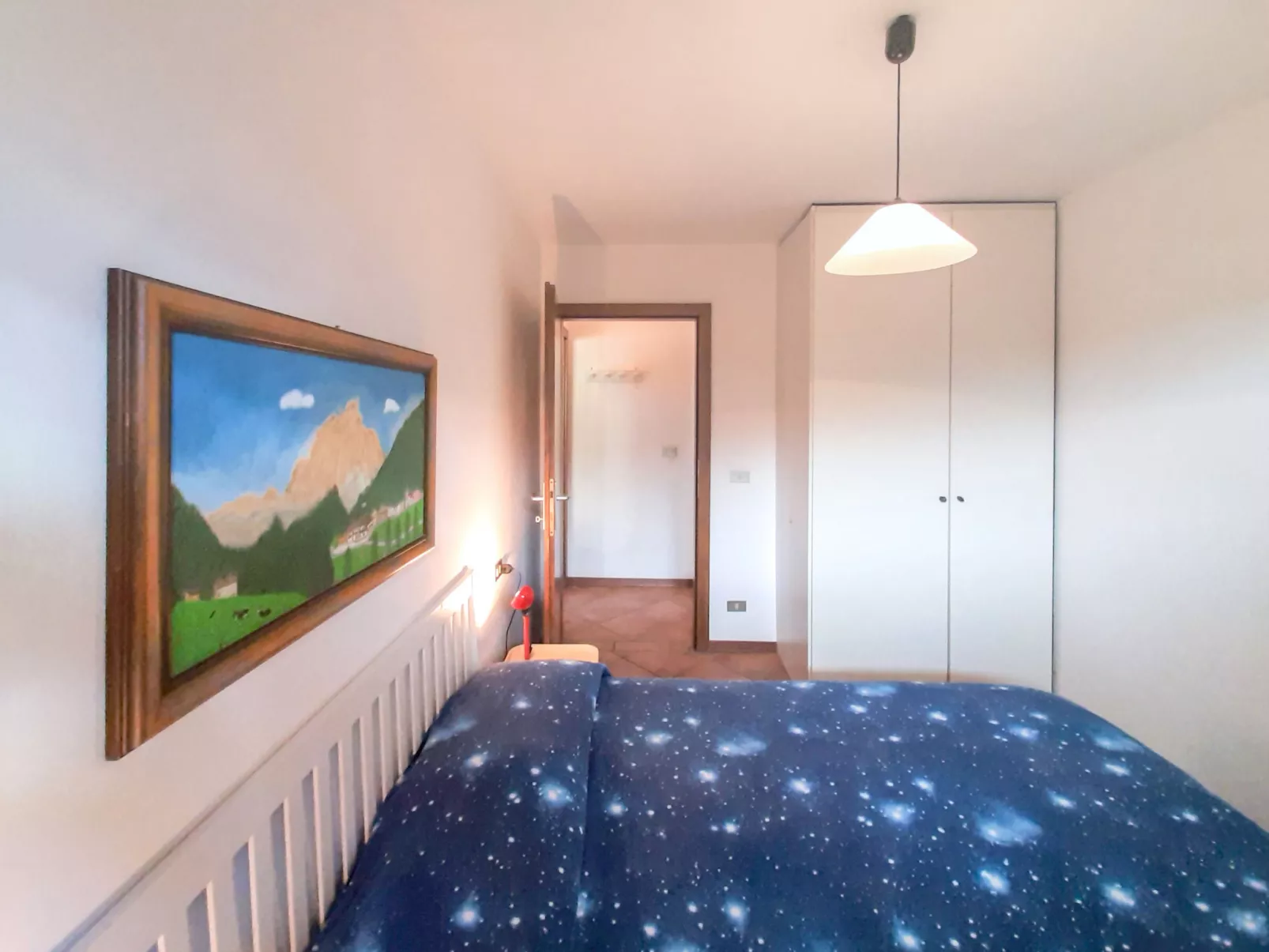 2-room apartment 45 m2, on the lower ground floor. Practical and comfortable furnishings: living/dining room with 1 double sofabed, dining table, kitchen corner and TV (flat screen). Exit to the garden, to the patio. 1 room with 1 double bed. Kitchenette (4 hot plates, oven). Shower/bidet/WC. Small garden. Terrace furniture. Facilities: washing machine, hair dryer. Parking, garage on the property. Please note: suitable for families. Non-smokers only. Maximum 1 pet/ dog allowed. Fire extinguisher. IT022039B4RTBOSYPH