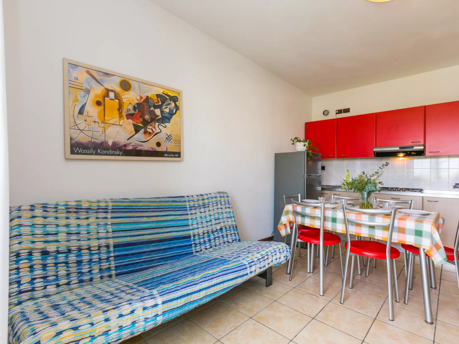 "Robinia/Pinetine", 2-room apartment 42 m2. Practical furnishings: living/sleeping room with 1 double sofabed, dining table and satellite TV. 1 double bedroom. Kitchenette (4 gas rings, freezer, electric coffee machine). Shower/WC. Air-conditioning, forced-air heating. Balcony or terrace roofed. Balcony furniture. Facilities: safe, baby cot for up to 2 year olds (extra). Parking (1 car). IT027005C25JJDBURA