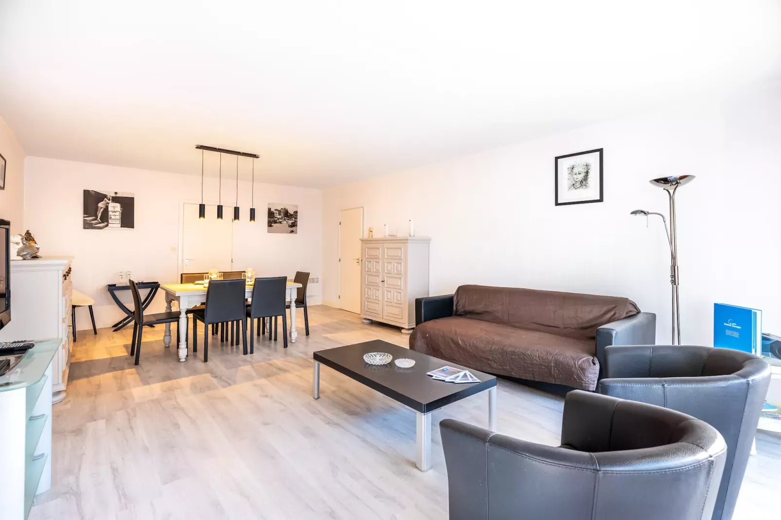 This cozy 1-room apartment on the first floor (elevator), with side sea view, is located a stone's throw from the beach. Within walking distance of shops and restaurants. The apartment has a spacious living room, separate kitchen. Well maintained and neatly furnished in a mixed style. Pets allowed.