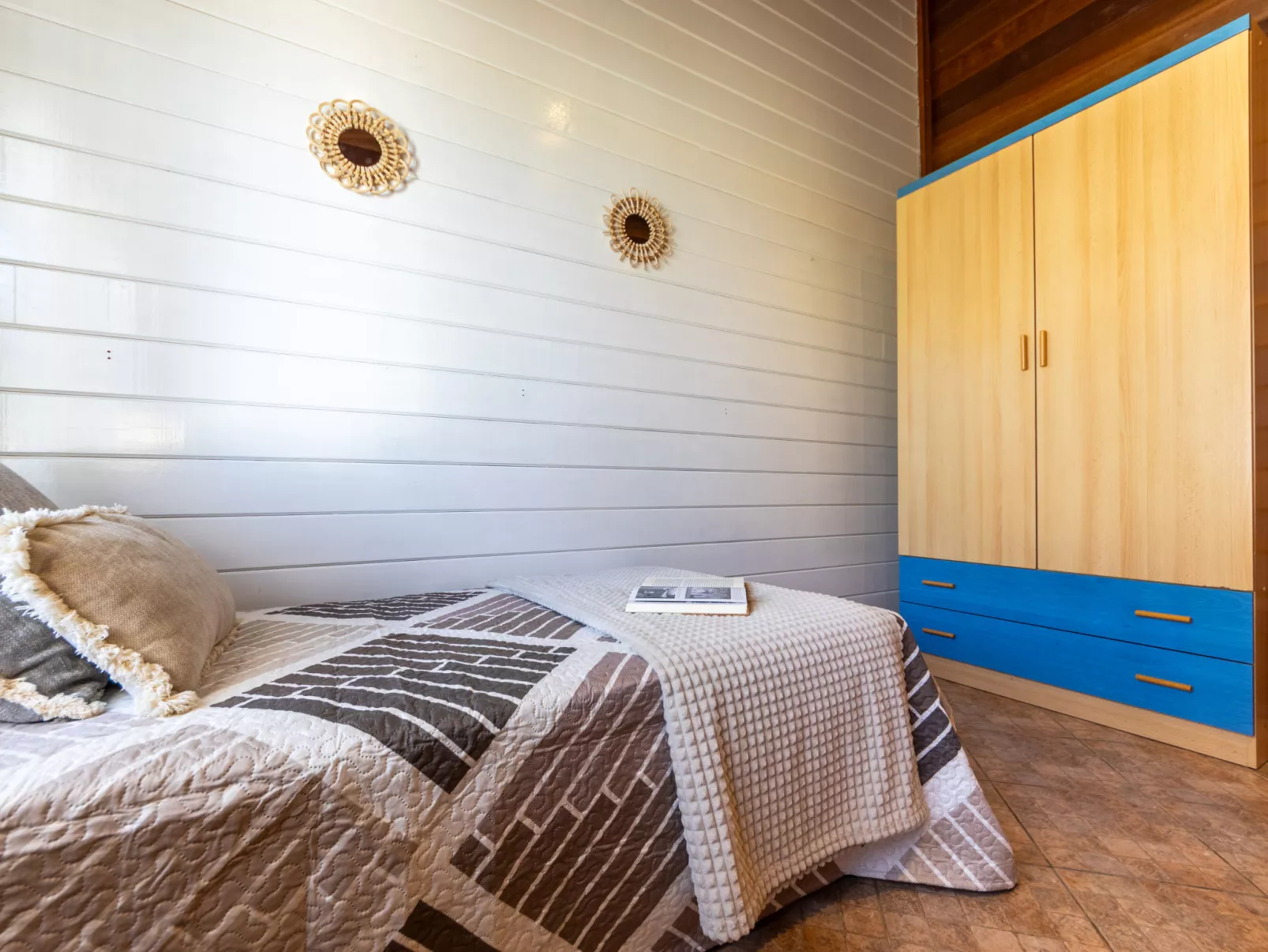 "Tropical 3", 4-room chalet 82 m2, on the ground floor. Bright, beautiful and cosy furnishings: living/dining room with dining table and digital TV. Exit to the garden, to the terrace, to the swimming pool. 2 double bedrooms, each room with 1 french bed (135 cm, length 190 cm). 1 double bedroom with 2 beds (90 cm, length 190 cm). Open kitchen in the entrance (4 hot plates, oven, toaster, microwave, freezer, electric coffee machine, pizza oven). Exit to the terrace, to the swimming pool. Shower/WC, hip bath/WC. Air-conditioning, forced-air heating. Terrace furniture, barbecue, deck chairs, covered balcony. Facilities: washing machine, iron, mosquito net, hair dryer. Internet (WiFi, free). Parking at the house. Suitable for families. Maximum 2 pets/ dogs allowed. HUTTE-038554 // Reg. Nr.: ESFCTU0000430190001019260000000000000000HUTTE-0000160