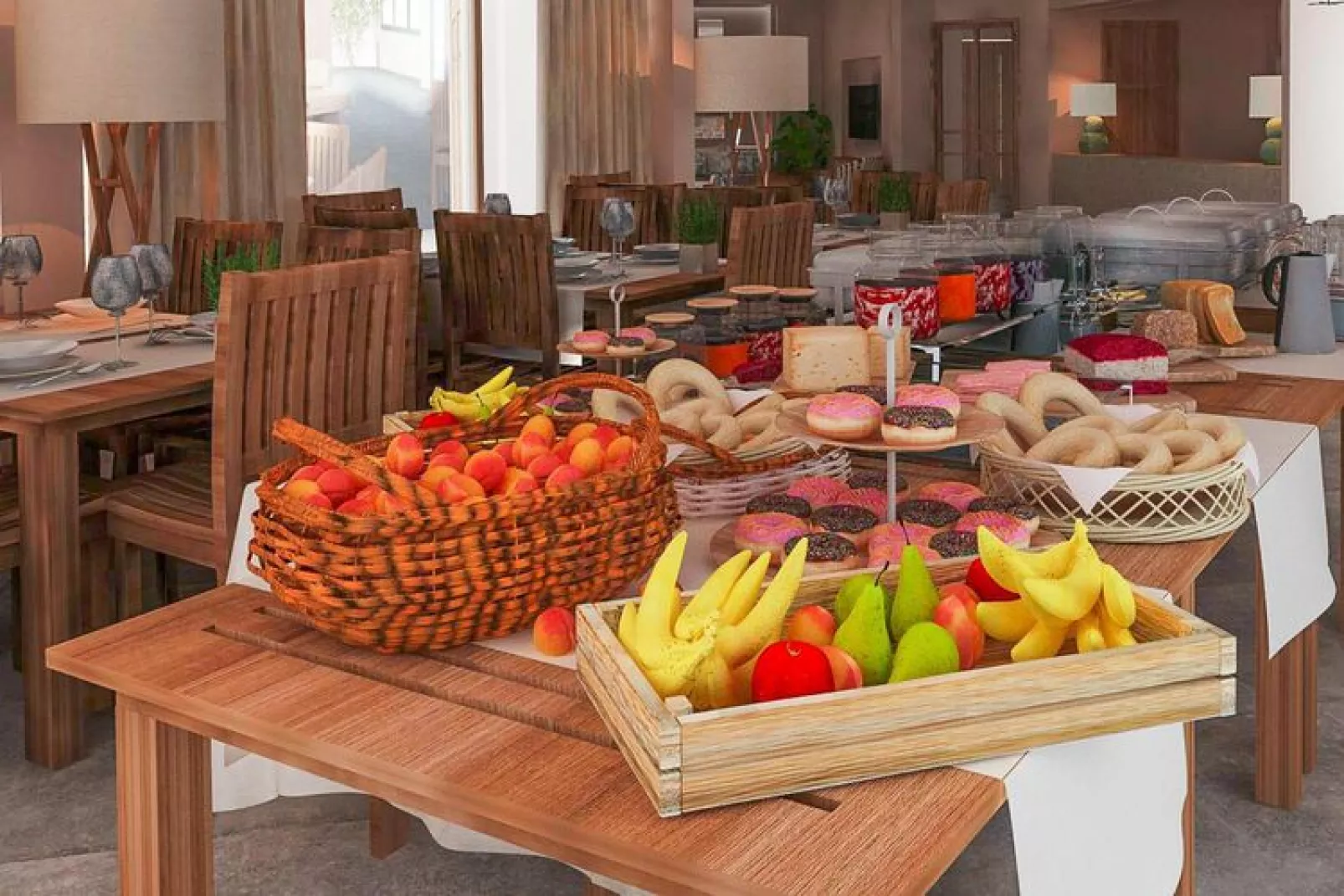 Le petit-déjeuner est sous forme de buffet, le dîner (en demi-pension), ainsi que le déjeuner et le dîner (en pension complète) sont servis (pas de buffet, le dîner comprend : 1er plat, 2ème plat, salade + dessert par personne).