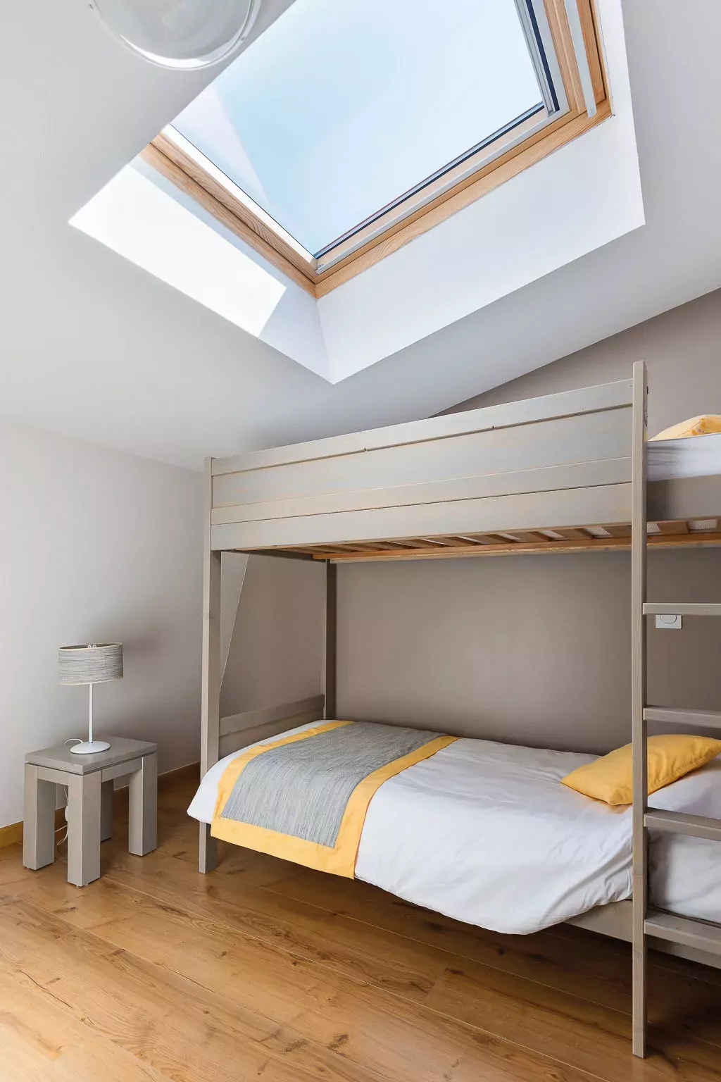 "Les Patios d'Eugénie", apt 2 pièces 38 à 45 m2. Aménagement plaisant: séjour/chambre à coucher avec 1 divan-lit double, table pour les repas et TV. 1 chambre avec 2 lits (90 cm, longueur 190 cm). Cabine avec 1 x 2 lits superposés (80 cm, longueur 180 cm). Coin cuisine (lave-vaisselle, 2 plaques vitrocéramiques, micro-ondes). Bain/WC. Chauffage électrique, air-conditionné. A disposition: chaise haute pour enfant, lit bébé jusqu'à 2 ans (en sus). Internet (Connexion WIFI, gratuit). Veuillez noter: logement non-fumeur. Maximum 2 animaux/ chiens autorisés. Détecteur de fumée, extincteur. Au lieu d'une chambre fermée, des espaces de couchage sont situés dans une zone ouverte (galerie, alcôve...).