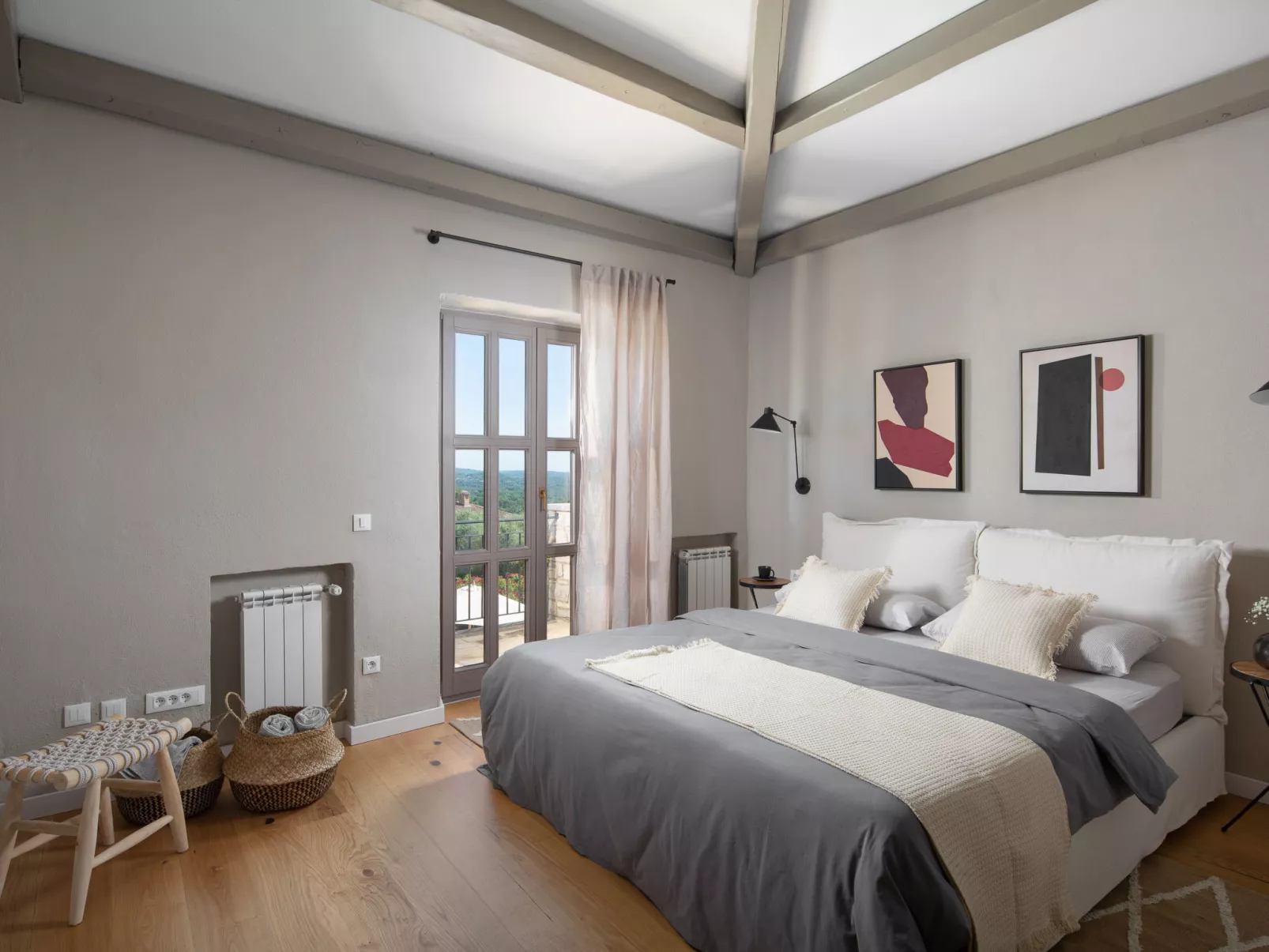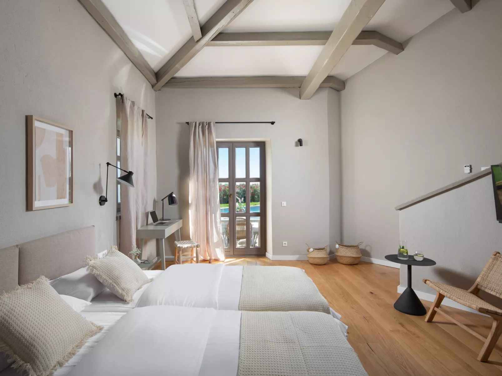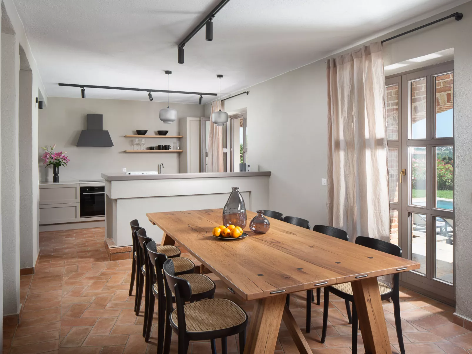 Villa 5 pièces 202 m2 sur 2 niveaux. Séjour/salle à manger avec TV (satellite) (écran plat), air-conditionné. Sortie sur la piscine. 1 chambre avec 1 lit double (2 x 180 cm, longueur 200 cm), WC séparés, bain/douche et TV (satellite) (écran plat), air-conditionné. Sortie sur le jardin. 1 chambre avec 2 lits (90 cm, longueur 200 cm), bain/douche/WC et TV (satellite) (écran plat), air-conditionné. Cuisine ouverte (four, lave-vaisselle, 4 plaques à induction, grille-pain, bouilloire électrique, micro-ondes, congélateur, cafetière électrique). WC séparé. À l'étage supérieur: 1 chambre avec 1 lit double (2 x 90 cm, longueur 200 cm), bain/WC et TV (satellite) (écran plat), air-conditionné. Sortie sur la terrasse. 1 chambre avec 1 divan-lit (140 cm, longueur 190 cm), TV (satellite) (écran plat), air-conditionné. Douche/WC. Chauffage à air chaud. Terrasse 10 m2. Meubles de terrasse, chaises longues. A disposition: coffre-fort, fer à repasser, sèche-cheveux. Internet (Connexion WIFI, gratuit).