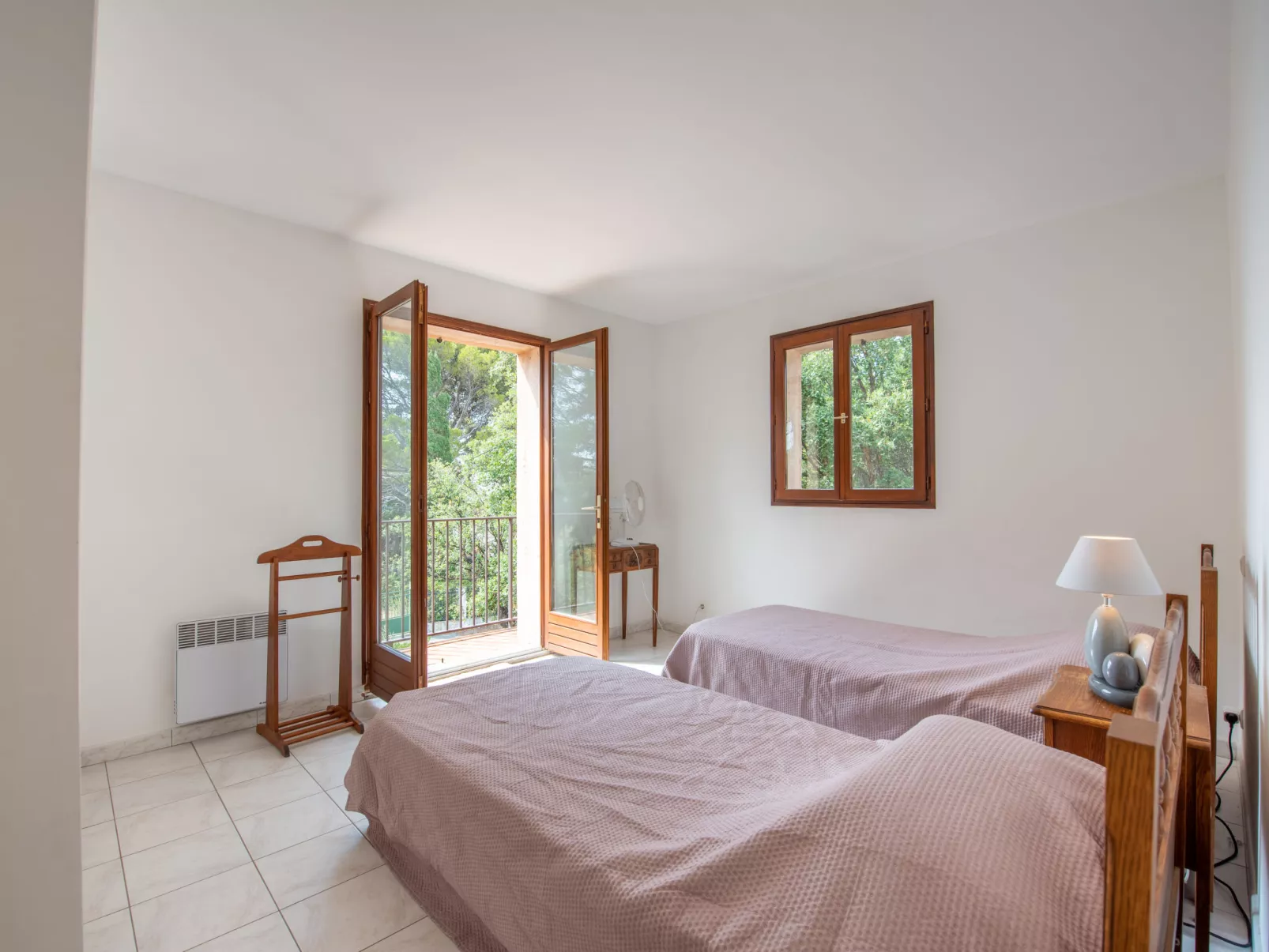 Villa 5 pièces 140 m2 sur 2 niveaux. Aménagement agréable: séjour/salle à manger avec TV (écran plat), volet roulant électrique. Sortie sur le jardin, sur la terrasse. 1 chambre avec 1 lit (90 cm, longueur 190 cm), 1 couchage (100 cm, longueur 190 cm), ventilateur. 1 chambre avec 2 lits (90 cm, longueur 190 cm), ventilateur. Cuisine ouverte (four, lave-vaisselle, 4 plaques vitrocéramiques, grille-pain, bouilloire électrique, micro-ondes, congélateur, cafetière électrique, Capsules pour machine à café (nespresso) (NON INCLUSES)). Salle de bains, WC séparé. À l'étage supérieur: 1 chambre avec 1 lit (80 cm, longueur 190 cm), 1 couchage (90 cm, longueur 190 cm), ventilateur. 1 chambre avec 2 lits (90 cm, longueur 190 cm), ventilateur. Sortie sur le balcon. Douche, WC séparé. Chauffage électrique, chauffe eau (150 litres). Terrasse, situation nord et situation ouest. Meubles de terrasse, barbecue électrique, chaises longues (2). Belle vue sur le jardin. A disposition: lave-linge, fer à repasser, sèche-cheveux. Internet (Connexion WIFI, gratuit). Place de parking (cloturée, 2 Voitures). Veuillez noter: maximum 1 animal/ chien de petite taille autorisé. TV seulement FR. Détecteur de fumée. Annonce d'un particulier (art 155, IV du CGI). FR8430.715.1